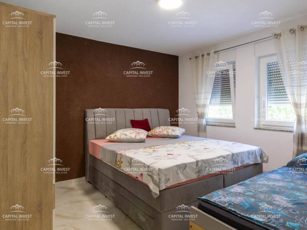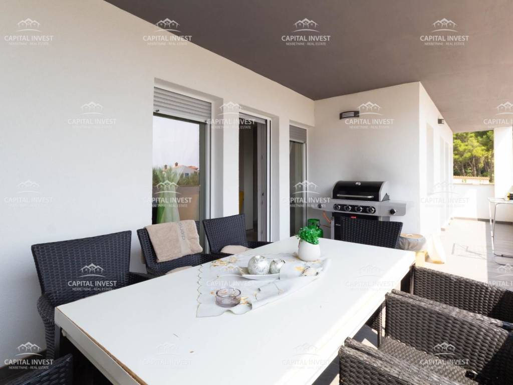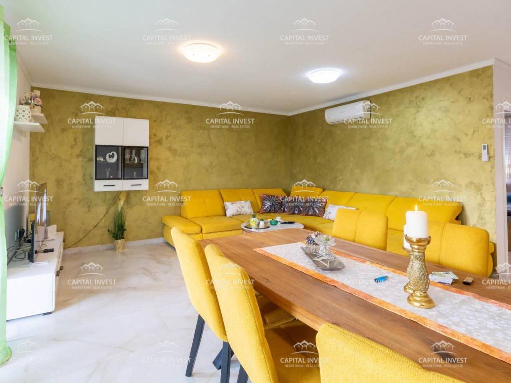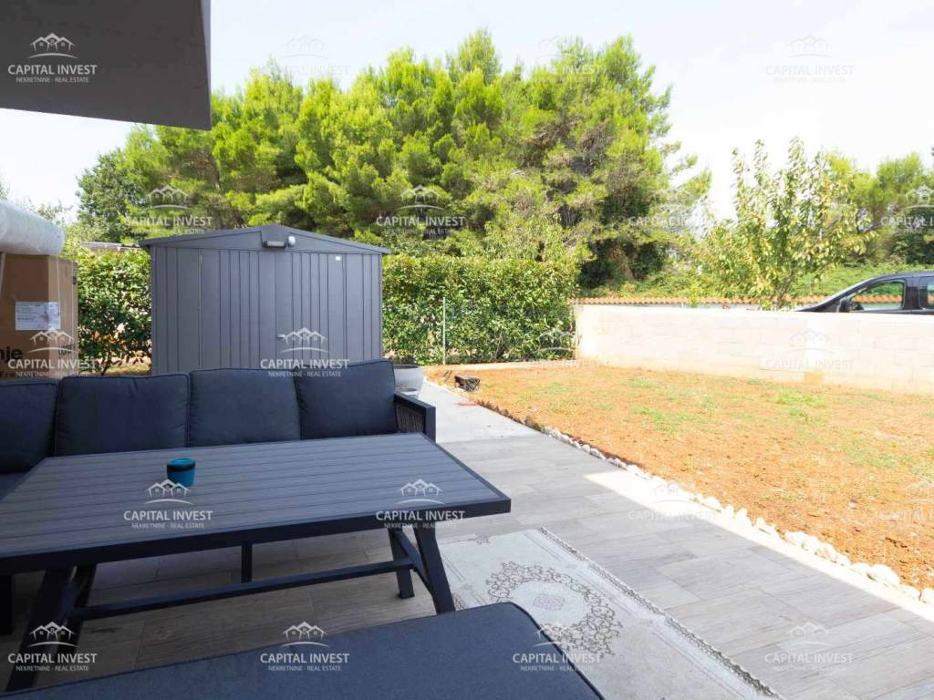 We are selling an attractive ground-floor apartment in a small residential building in Medulin. The apartment consists of an entrance hallway, a spacious living room with kitchen and dining area, three bedrooms, three bathrooms, a large covered terrace, two storage rooms, and a courtyard. Heating is provided by electric underfloor heating, and cooling is provided by air conditioning units in every room. The apartment is fully equipped and sold as such. Ownership is clear 1/1, with no encumbrances.