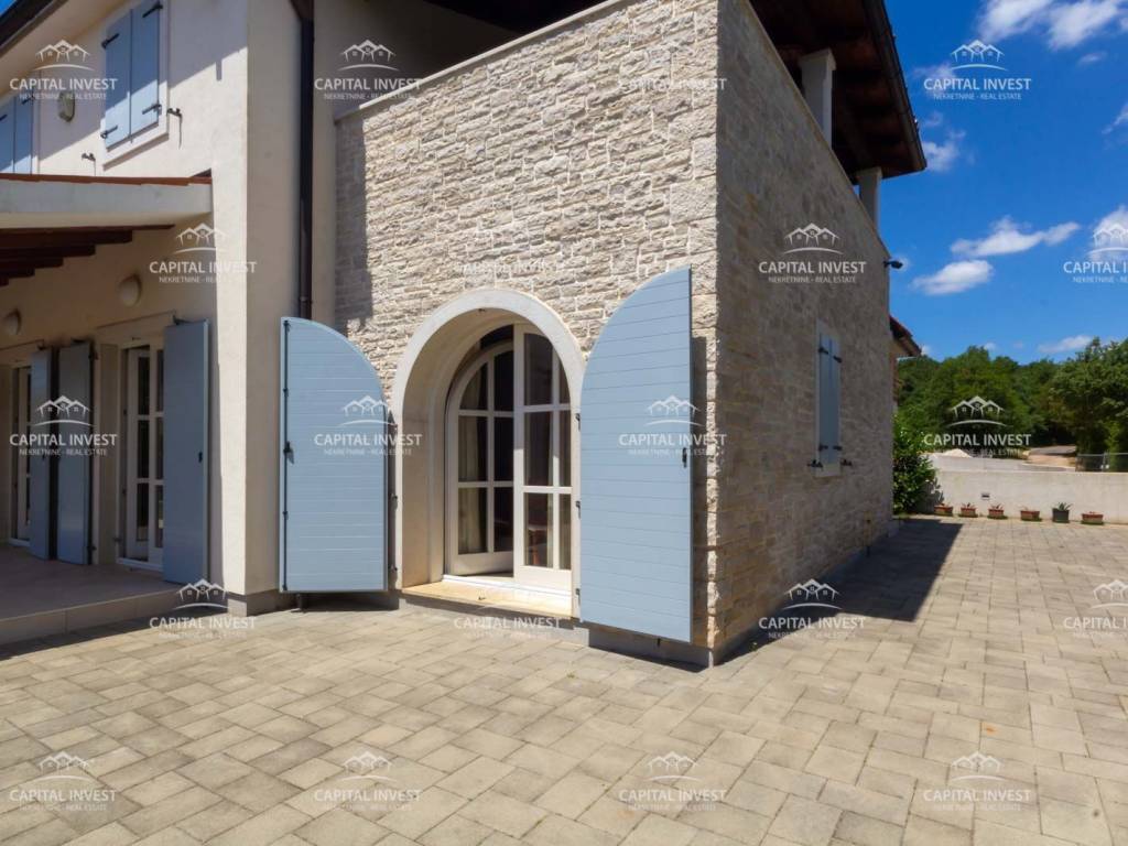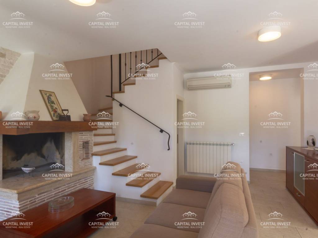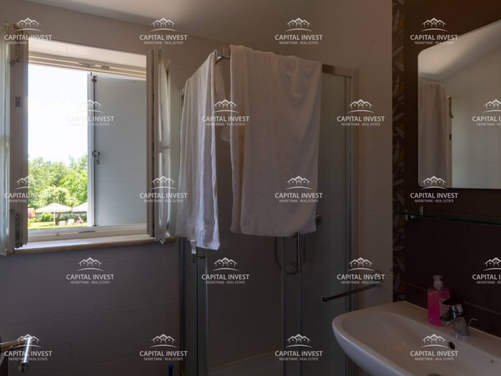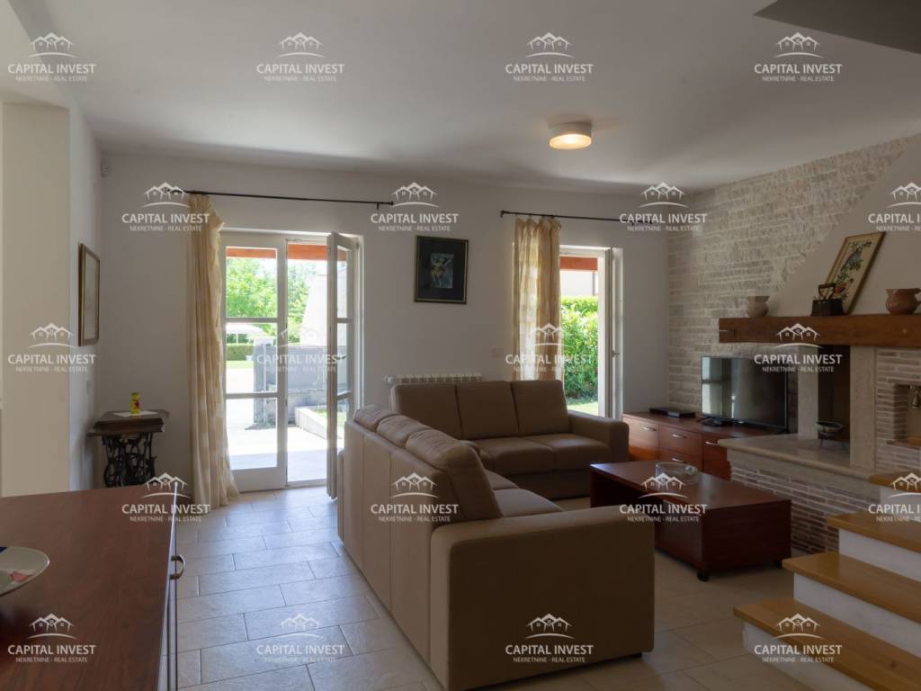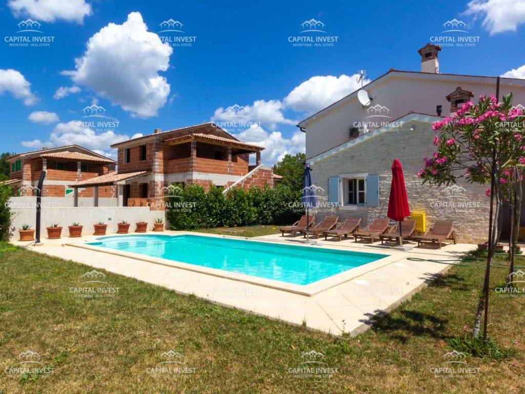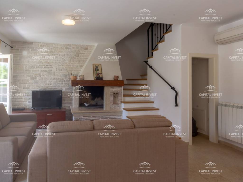 We are selling a holiday house in the vicinity of Marčana, consisting of a ground floor and an upper floor, connected by an internal staircase. On the ground floor, there is an entrance hallway connected to a spacious living room with a fireplace and a large kitchen with a dining area. From the living room, there is access to a covered terrace overlooking the swimming pool. On the upper floor, there are three bedrooms, each with its own bathroom, and from the largest bedroom, there is access to a spacious balcony facing the opposite side of the pool, allowing complete privacy on the upper floor. Parking spaces are located within a landscaped yard, which is fully enclosed by a green fence. The house is accessed directly from an asphalt road, and all additional amenities are nearby. The house is fully furnished and is sold as such. It has been rented to tourists since its construction, generating an annual net income of approximately 30,000 euros. Ownership is clear 1/1. There are no encumbrances.