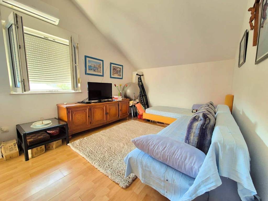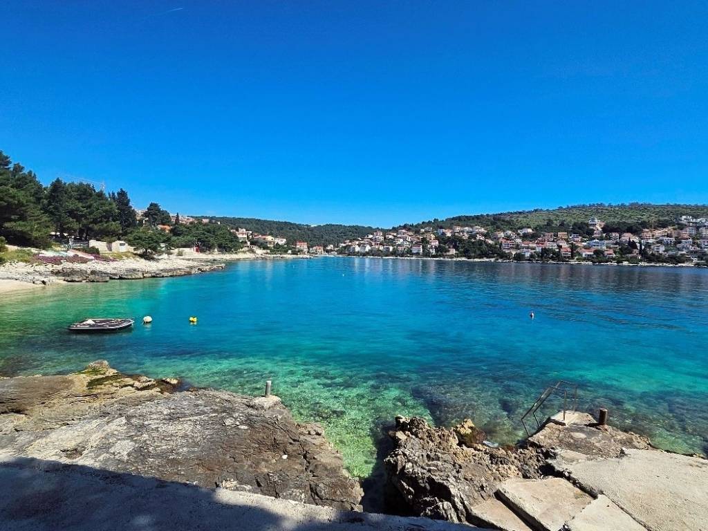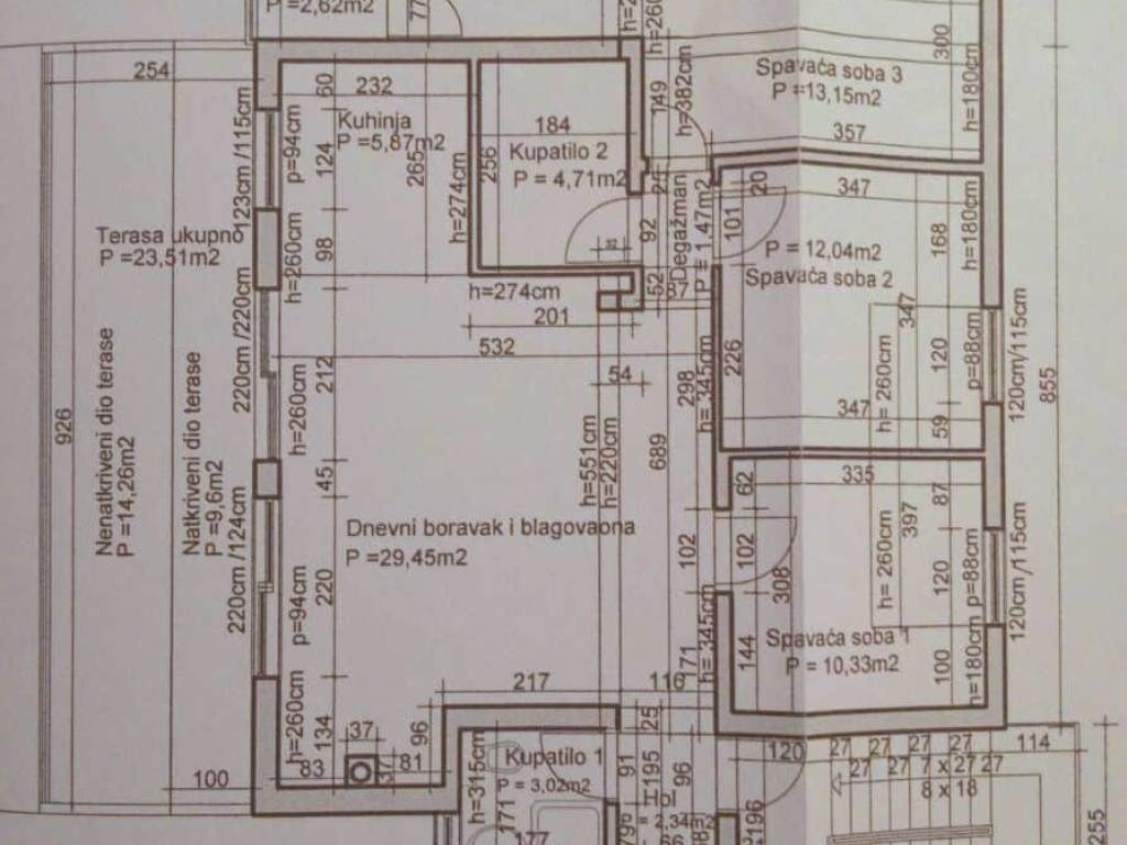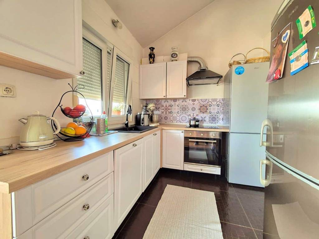 L'appartement est situé au troisième (dernier) étage d'un petit immeuble avec un total de sept logements. Surface habitable : 86,75 m² + terrasses : 2,62 m² et 23,51 m². Il comprend trois chambres, deux salles de bains, un spacieux séjour avec salle à manger (29,45 m²), une entrée et deux cuisines. Le séjour et la cuisine donnent accès à une grande terrasse de 23 m² avec vue mer. Orienté sud, cet appartement est très lumineux et ensoleillé. Le bâtiment est de construction ancienne, construit entre 2003 et 2005, dispose suffisamment de espaces extérieurs avec barbecue, abri de jardin et des places de parking. L'espace est un atout majeur de cet appartement : avec un peu d'imagination, vous pourrez créer un espace de vie moderne et agréable, idéal pour vos vacances. La plage, située à seulement 3 minutes à pied (200 m), est également un atout. La distance du la premiere supérette est de 210 m, du centre du village et de toutes les commodités nécessaires (supermarché, café, pharmacie, etc.) à 1 km (3 min en voiture), de l'aéroport international de Split à 9 km (14 min en voiture).