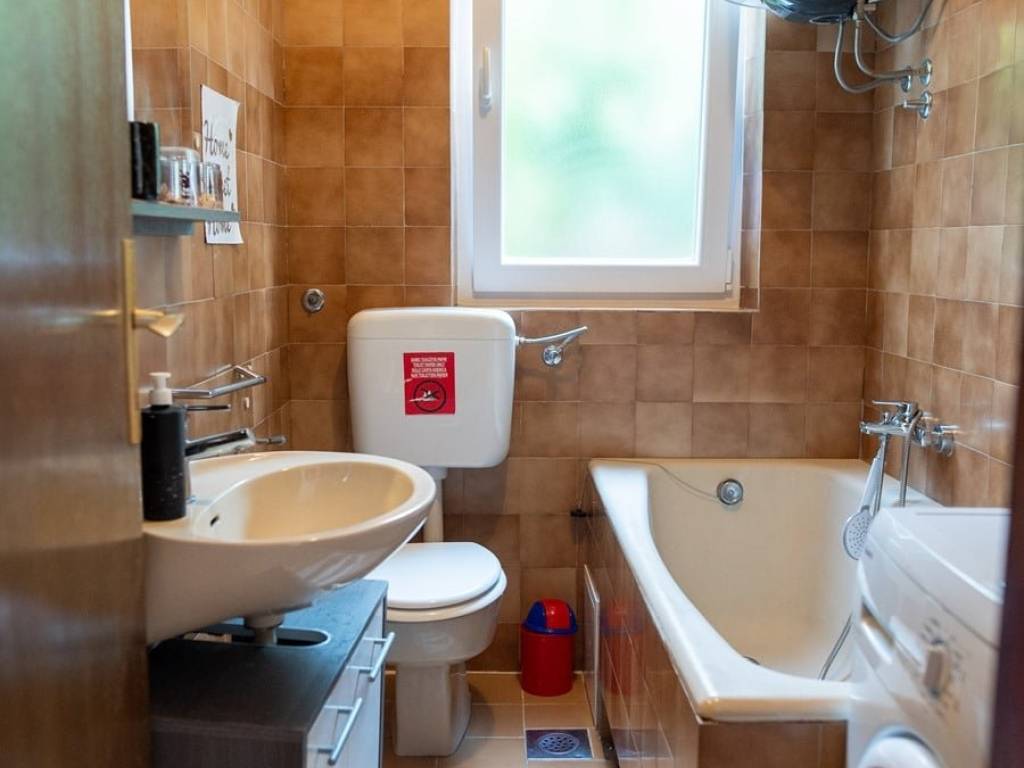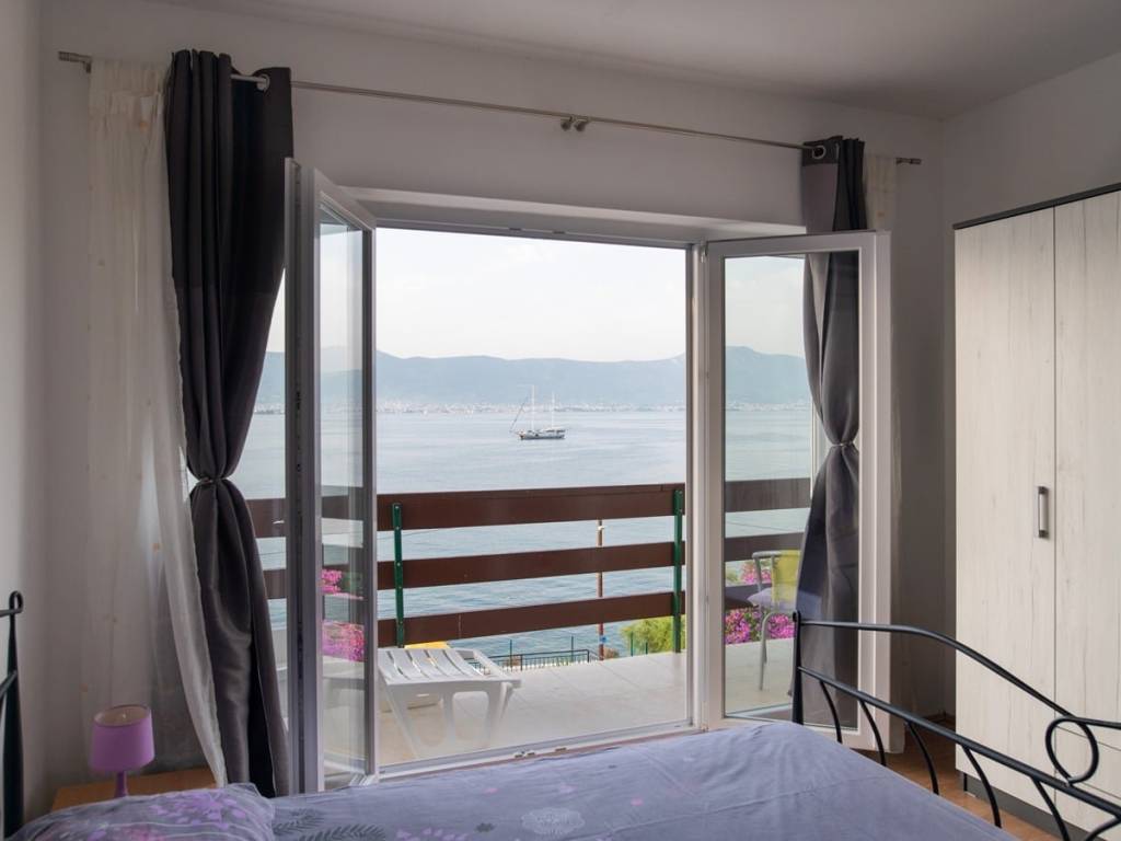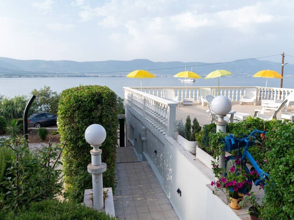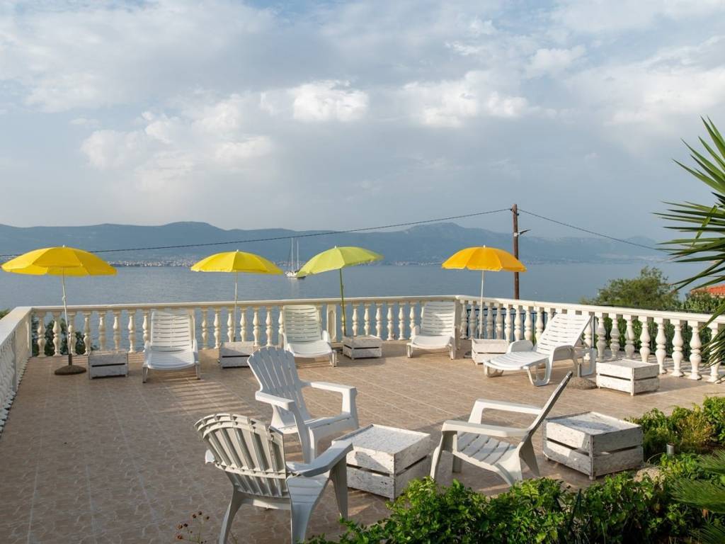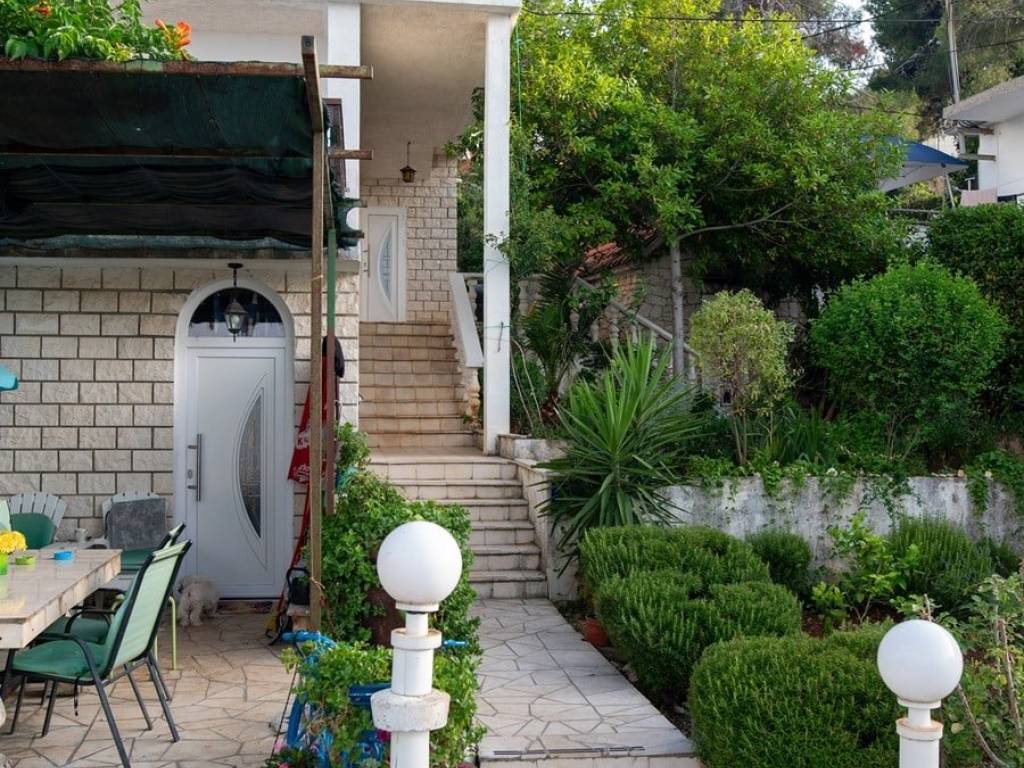 La maison avec des appartements, en nature un bâtiment jumelé, d'une surface totale de construction de 240 m2, située sur un terrain de 600 m2. La maison contient 4 unités résidentielles réparties sur trois étages : sous-sol, rez-de-chaussée et premier étage. Les étages sont reliés par un escalier extérieur.Au sous-sol, il y a un appartement composé d'un salon, d'une salle à manger, d'une cuisine, d'une salle de bain, de toilettes et de deux chambres. Étant donné que la maison est située sur une position plus élevée, le sous-sol a l'impression d'être un rez-de-chaussée.Le rez-de-chaussée contient un appartement avec trois chambres, une salle de bain, un salon, une cuisine, une salle à manger et un accès à une grande terrasse.Au 1er étage, il y a deux appartements avec une chambre, un salon, une cuisine et une salle à manger. Un appartement a accès à une terrasse avec vue mer, et l'autre a accès à un balcon plus petit côté sud. Chaque étage offre une belle vue mer.La maison est vendue entièrement meublée et équipée. Tous les appartements sont climatisés. La maison a été entretenue mais laisse la possibilité d'investissements supplémentaires. Par exemple, le sous-sol nécessite des travaux supplémentaires afin de rafraîchir et de moderniser l'espace.A côté de la maison, il y a aussi un bâtiment auxiliaire avec la fonction d'un BBQ. Il a une superficie de 12 m2.Dans la cour, il y a aussi un garage spacieux avec une surface de construction brute totale de 74 m2.Le grand jardin offre de l'espace pour des possibilités supplémentaires, telles que la construction de places de parking extérieures supplémentaires, la construction d'une piscine, la transformation du garage en espace commercial ou résidentiel…Cette propriété est une excellente opportunité d'investissement. L'établissement a une activité bien établie de location à des fins touristiques et obtient d'excellents résultats financiers.La maison est dans un excellent emplacement, à seulement 10 m de la mer et de la plage. Le magasin, le café, le restaurant et la pharmacie les plus proches se trouvent à moins de 100 m. La maison est à seulement 4 km de Trogir, à 7 km de l'aéroport de Split et à 30 km du centre de Split.
