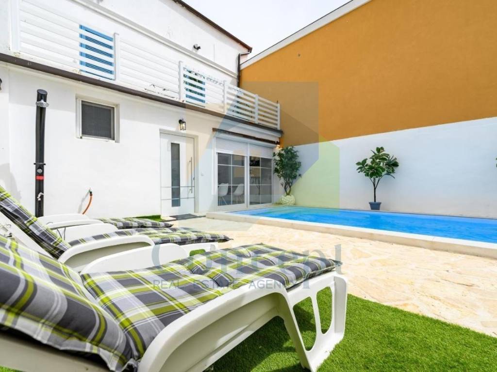 Just 3 km from Poreč and the first beaches, this modernly renovated Istrian house with a garden is located. The house spans 140 m across three levels, while the garden of approximately 60 m includes a pool, sunbathing area, and a small storage room.