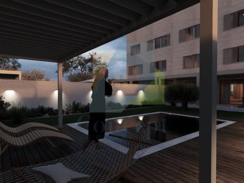 The apartment will be equipped with top-quality materials, including modern ceramic tiles, parquet flooring, three-layer anthracite carpentry, electric blinds, high-quality air conditioning units, and electric underfloor heating. The safety of residents is ensured with video surveillance and a security door with a code.