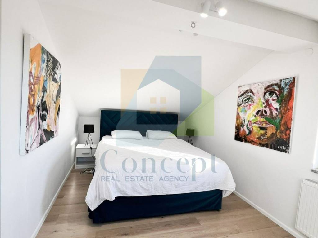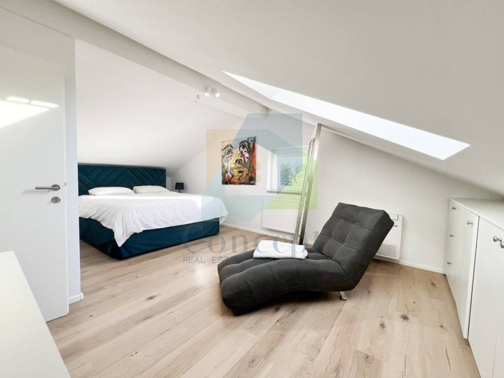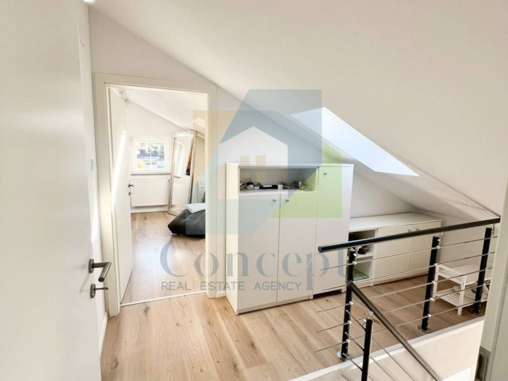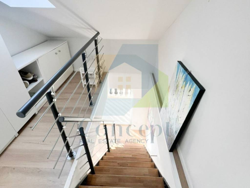 Elegantno unutarnje stubište vodi na drugu etažu, gdje se nalaze glavna spavaća soba, dodatna soba koja može služiti kao spavaća soba ili garderoba te druga kupaonica.