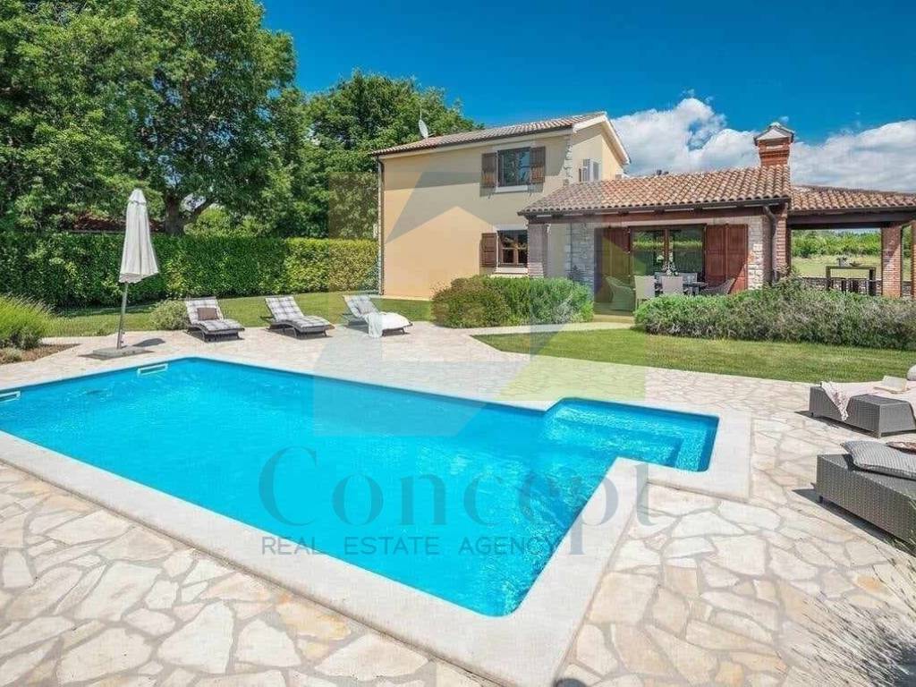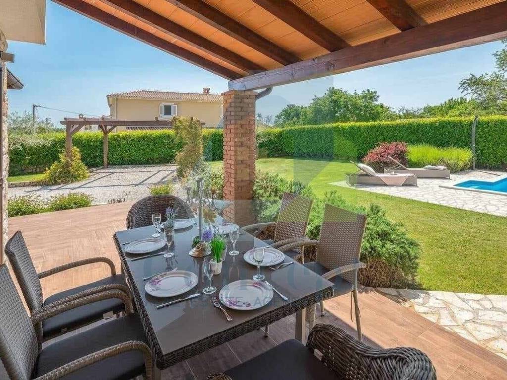On a plot of land measuring 788 m, in a peaceful and picturesque setting near Poreč, stands a modern house with a total living area of 144 m. This property harmoniously combines comfort, aesthetics, and a natural environment.