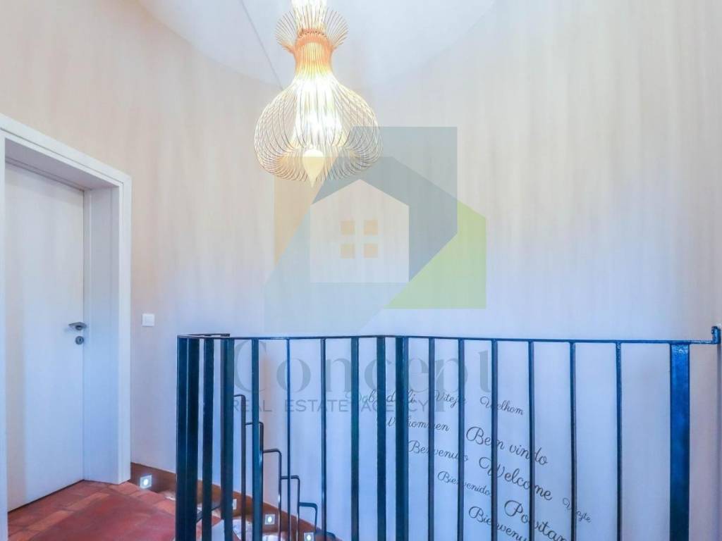 On the first floor, after climbing the beautiful staircase, you will be greeted by a spacious hallway, a bathroom, and three comfortable bedrooms, one of which has an en-suite bathroom. These rooms offer privacy and comfort, and one of them has access to a balcony with a view of nature.