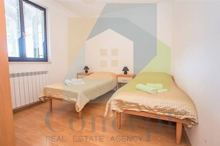Just 750 meters from the beach and 2,500 meters from the center of Poreč, a spacious apartment house is for sale, situated on a plot of land measuring 609 m. The house spans three levels basement, ground floor, and first floor with a total net area of approximately 400 m.