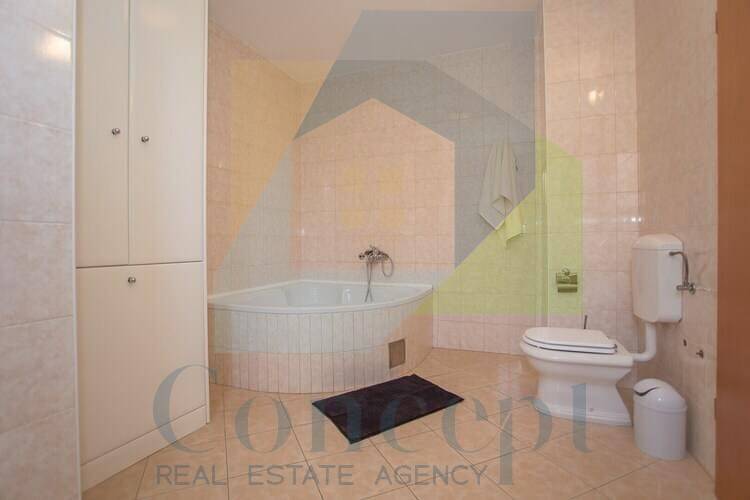 The house is equipped with air conditioning and a central heating system with radiators, ensuring a comfortable stay throughout the year.