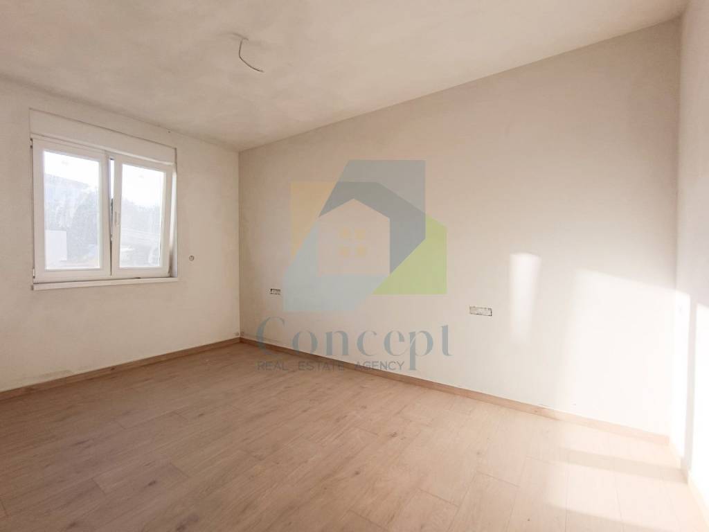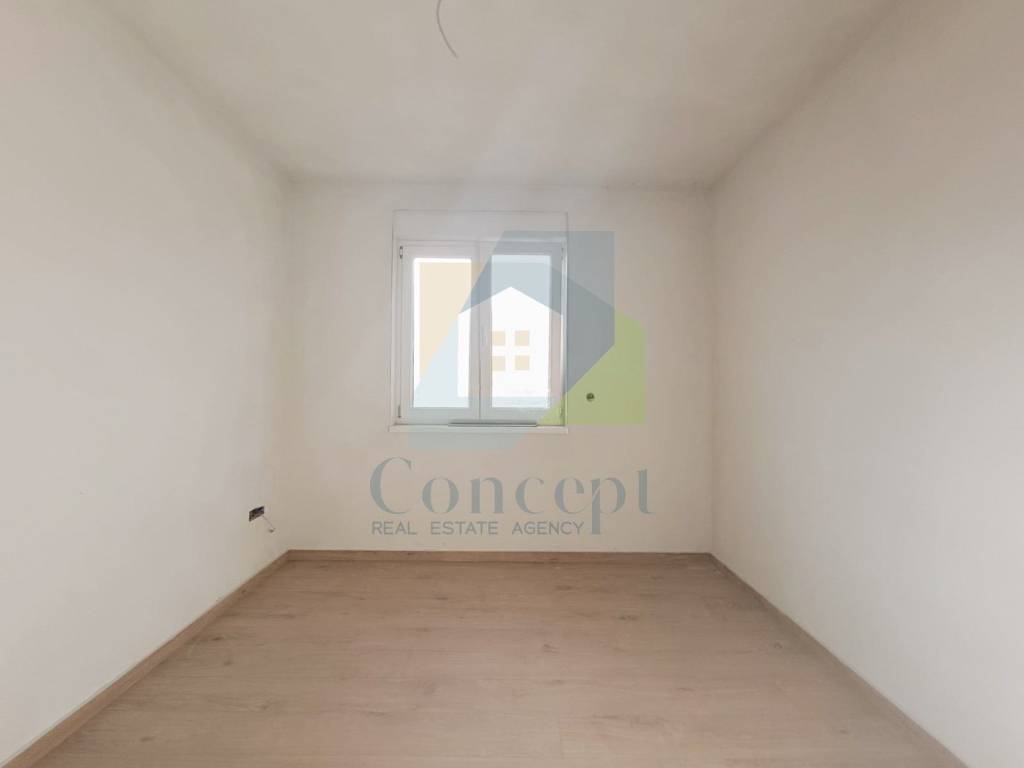 This first-floor apartment has a total area of 52.85 m, and with an additional covered loggia of 4.28 m, the living space is further expanded. The apartment consists of two bedrooms, a bathroom, and a spacious living room with an open-concept kitchen and dining area, creating a cozy and bright atmosphere. From the living room, you can access the covered loggia with a stunning sea view, perfect for outdoor enjoyment.