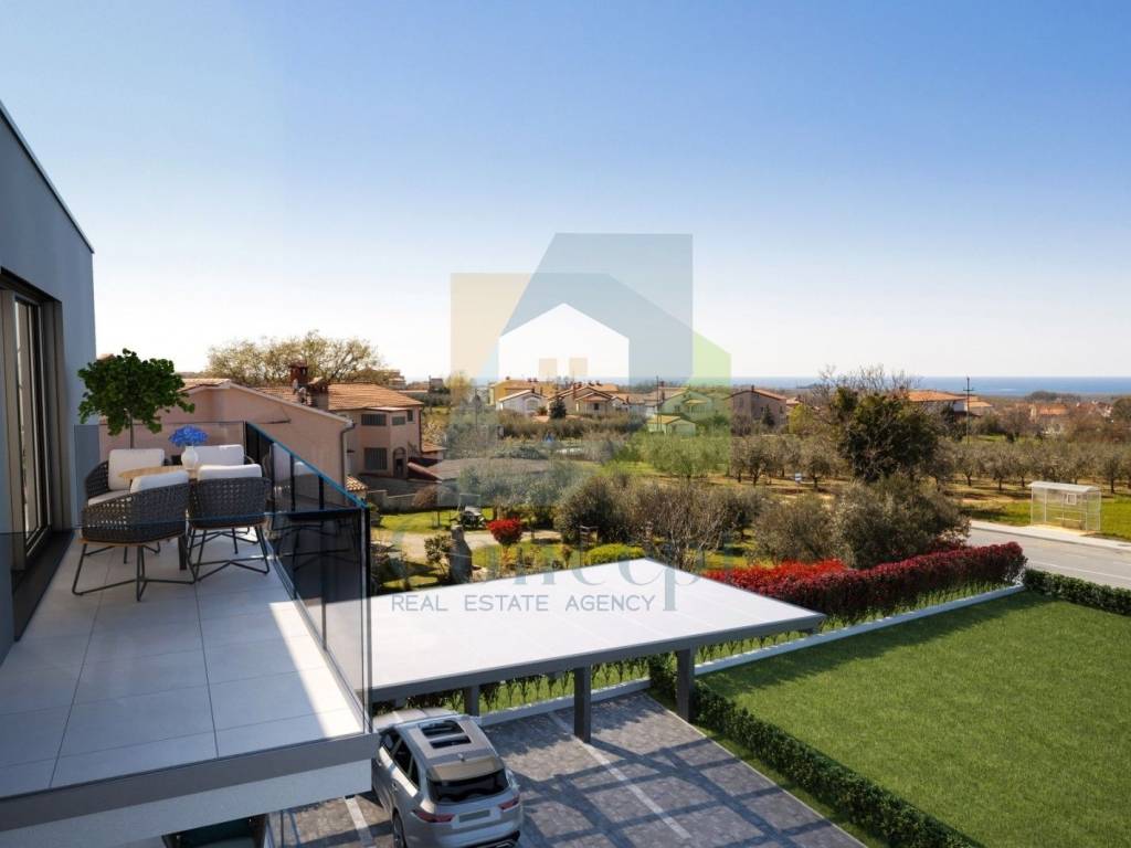 Located in a very convenient area, just 5 kilometers from Poreč and the sea, is a new residential building comprising a total of eight apartments. The building offers a stunning sea view, providing an exceptionally pleasant living atmosphere.