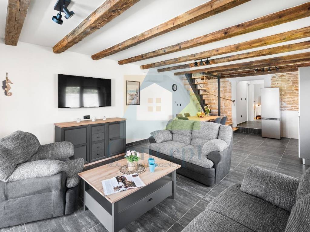 For sale is a renovated stone house with a pool located near Poreč, approximately 10 km from the city center and about 9 km from the sea. The house is situated in a quiet neighborhood with available amenities for living or tourist rental.