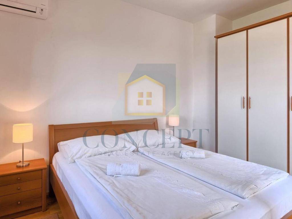 The total area of the villa is approximately 130 m, while the garden covers 500 m. It consists of three bedroomstwo with double beds and one with a single bedan illuminated living room and dining area, as well as a fully equipped kitchen. One of the bedrooms offers a panoramic view of the sea.