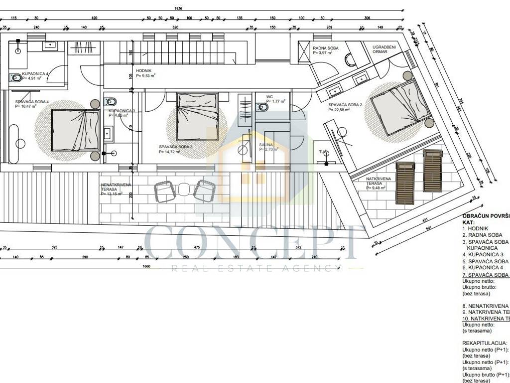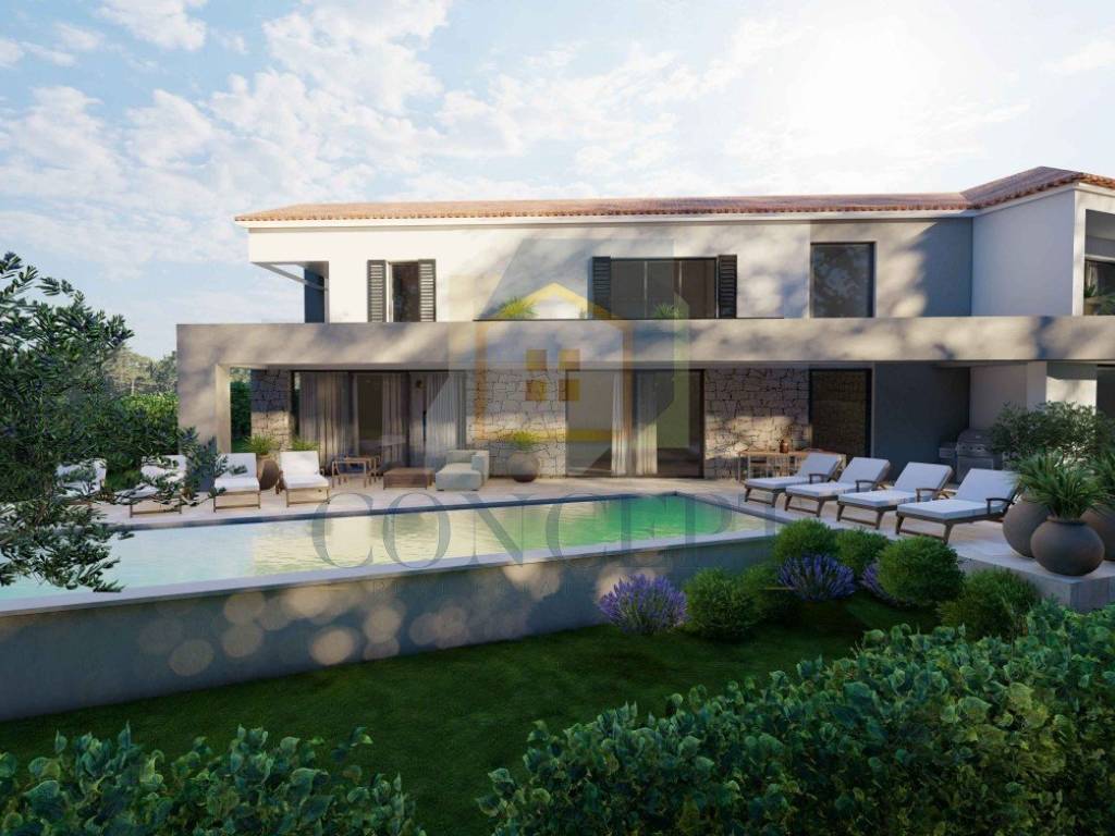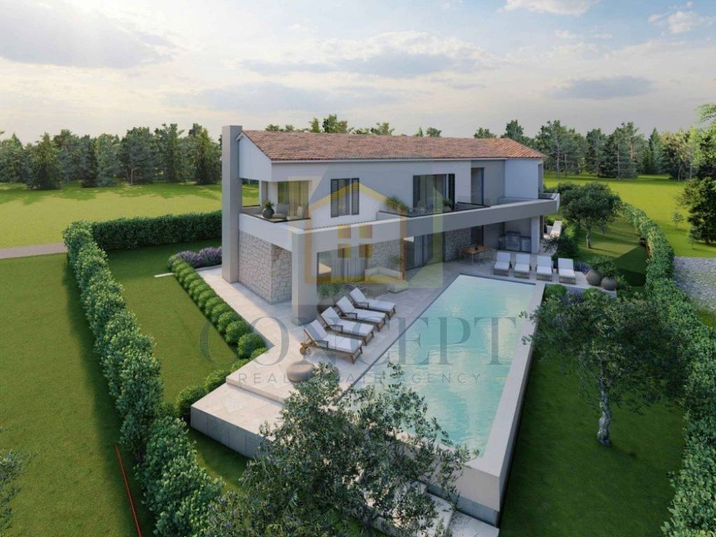 For sale is a modern villa with a breathtaking sea view, located in a tranquil area with the necessary infrastructure for everyday life a shop, school, kindergarten, restaurant, and café just 12 km from Poreč. The house will be built on a plot of land measuring 1026 m and will encompass approximately 250 m of net living space.
