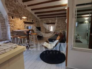 Right in the old town center of beautiful Rovinj, this apartment is for sale, which in nature represents two separate residential units. One is a studio of 16 m2 and the other is larger than 30m2. In addition to being apartments with warmth and soul, they are also in an excellent established tourist rental business. The apartments are located on the third floor of a neat authentic stone building with wide wooden stairs and a comfortable entrance. Each of them captivates with its own charm, every detail that completes the picture of rustic style. The smaller apartment is designed as a charming studio, a perfect little corner for two, with a practical kitchen, a modern bathroom and an intimate sleeping area that is discreetly separated from the rest of the space. The larger apartment offers a cozy and functional kitchen and living room filled with light, a separate bedroom and an elegant and modern bathroom. The entire apartment was completely renovated in 2018, with special care taken to preserve the authenticity of the Mediterranean style, rustic details, warm tones, carefully selected furniture that create a feeling of a cozy home. Both apartments are fully equipped with designer elements and are sold as is, equipped with four air conditioners, custom-made furniture by a famous Rovinj carpenter, oak doors and high-quality GROHE sanitary ware. New floors filled with soundproofing material have been installed, the roof has been renovated and Genware porcelain has been used, creating a combination of old Rovinj and contemporary design. Modern details such as anti-limescale filters and renovated installations (electricity and water, each residential unit has separate connections) have also been introduced.