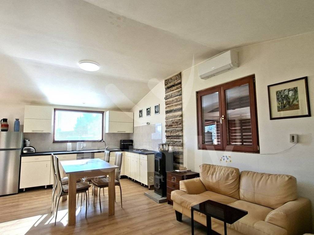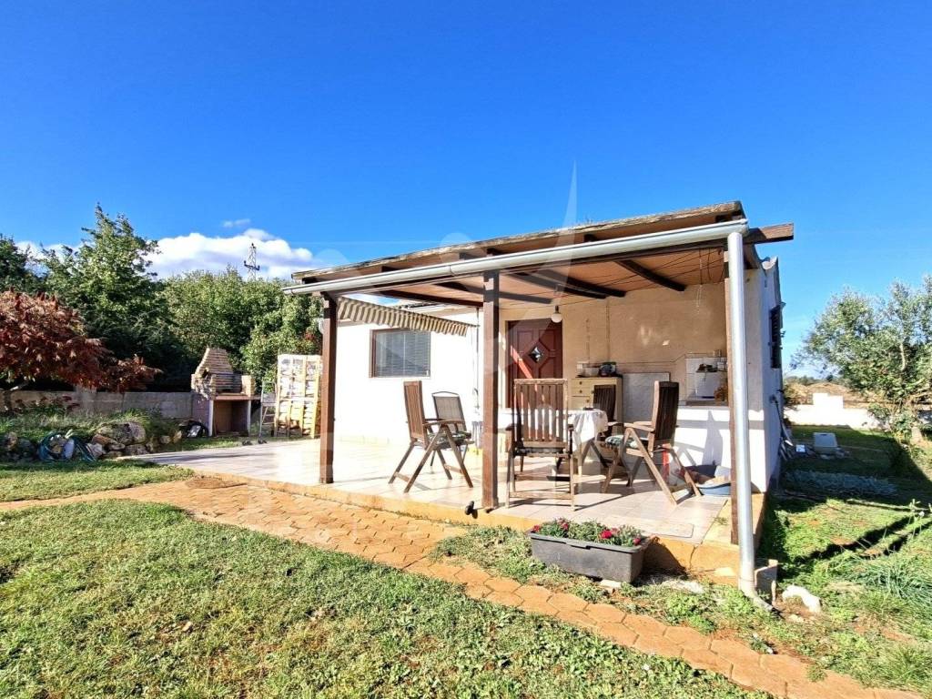 In an attractive location in a quiet village within the municipality of Marčana, there is this beautiful detached house measuring 76 m2 with a large garden measuring 9129 m2. The property consists of an open terrace, a bright and pleasantly furnished living room with an open-concept kitchen equipped with household appliances, which ensures a very pleasant stay in the property for future owners, two bedrooms and a bathroom with a shower. The floors in the rooms and living room are covered with laminate, while the rest of the property is tiled. The carpentry throughout the house is wooden and in good condition, the heating is regulated by a wood-burning stove and air conditioning. The house is built of brick with plasterboard partitions and solar panels are installed on the roof. In the courtyard on the terrace there is a summer kitchen, a fireplace, a shed and a beautiful olive grove. The olive trees are 15 to 25 years old and produce first-class olive oil. There are several connection points throughout the property that can be used for irrigation.