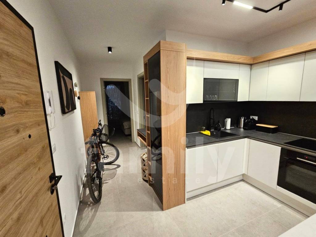 This high-quality new building by a proven investor with a total of four family apartments is located in Pula. The apartment is located on the ground floor of the new building and has an area of 55 m2 with two parking spaces. The apartment consists of an entrance hall, bathroom, two comfortable bedrooms, a bright living room equipped with custom-made furniture with access to a fenced garden, as well as a fully equipped DanKüchen kitchen, a 2 m2 storage room and a dining room. High-quality ceramics are installed throughout the apartment, and the heating system is regulated by electric underfloor heating in all rooms except the bedrooms and a Samsung WindFree air conditioning unit. The apartment is equipped with PVC carpentry with double-layered glass and anthracite color with blinds. The high-quality newly built building is located in an excellent location, close to all amenities such as shops, post offices, banks, kindergartens, promenades, parks, woods and the center of Pula.
