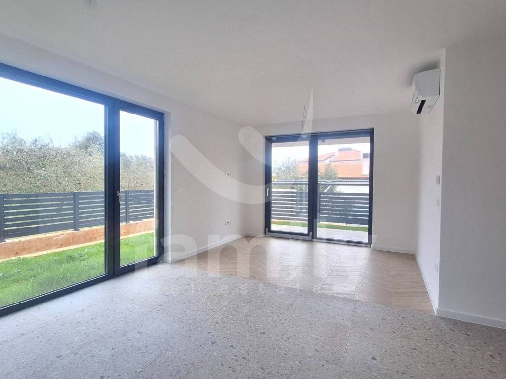 It is in Banjole, in a very quiet location, that the aforementioned modern and high-quality new construction of a small residential building by a proven investor with a total of 8 residential units is located. The aforementioned apartment of 62.34 m2 is located on the first floor and consists of an entrance hall equipped with a burglar-proof entrance door, two bright and spacious bedrooms, a spacious living room connected to an open space concept kitchen and access to a 4.15 m2 loggia, as well as a bathroom equipped with a Geberit built-in cistern, a walk-in shower, installed installations for a washing machine, an Ariston boiler and a ventilation system. The floors throughout the apartment are covered with high-quality ceramics, and the bedroom has Sherborne wood-imitation ceramics. The heating and cooling system is regulated by two Mitsubishi air conditioning units, one unit installed in the bedroom and one in the living room, and electric underfloor heating has also been implemented throughout the building with separate Wi-Fi thermostats in each room. PVC joinery with triple-glazed anthracite glass and aluminum roller shutters with electric lifts have been installed, and an anthracite-colored aluminum garden fence will also be installed. The building is equipped with a 12 cm thick thermal facade on the first floor, which certainly contributes to excellent thermal and sound insulation. The apartment has one uncovered parking space as well as one shared toilet located in the hallway of the building, which will be co-owned by all co-tenants, and the work is scheduled to be completed by the end of 2025.