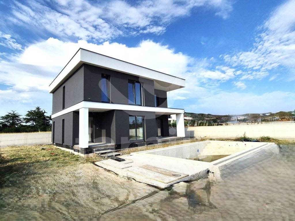 A beautiful, modern high-quality villa is located in a quiet, yet busy location. The mentioned property with a total area of 180 m2 is very well designed and positioned with an ideal orientation on a plot that has enough space for 3 parking spaces. The villa has a covered entrance area, a spacious beautiful hallway and one part intended for a small storage room. The living room and kitchen are open-plan with exits to terraces that have a view of the rest of the plot, greenery and a beautiful overflow pool. In the mentioned part we also have a spacious bedroom with a separate bathroom with beautifully laid large-sized ceramics and a walk-in shower. There is also space for a built-in wardrobe and a separate guest toilet. The property has three more bedrooms with separate beautiful bathrooms that are tiled, each with well-designed large-sized ceramics and modern colors and designs. Each room and bathroom have their own story and energy that will certainly be even more pleasant when the house is completed. Tinted glass will be installed on the window openings and on the terrace on the first floor. For the mentioned property we have ordered doors for all rooms, LG 3.5 kW air conditioners and ceramics to pave the outside. There is a total of 350 m2 of ceramics measuring 90x90 that is planned to pave the outside. A spacious, beautiful swimming pool in front of the house that is modern and beautiful with an overflow system, and around the villa is a part that needs to be arranged and completed according to your own wishes.