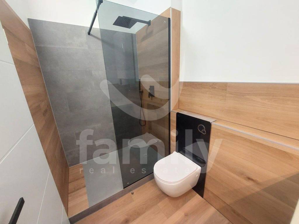 The mentioned property is located on the second floor within a smaller building with a total area of 75 m2. The apartment is in a building that has elevator access. The apartment has two loggias, one of which is 6.36 m2 and the other 7.07 m2. The apartment is more modern in appearance and comfortable with an entrance area of 4.38 m2. A well-designed layout makes the mentioned property interesting to live in with a living room, dining room and kitchen area of only 25.65 m2. The apartment also consists of two bathrooms with tinted glass walk-in showers with the same areas of only 4.10 m2 as well as two spacious bedrooms, one of which is 12.71 m2 while the other is 10.99 m2. The property is equipped with aluminum joinery in a light gray tone.