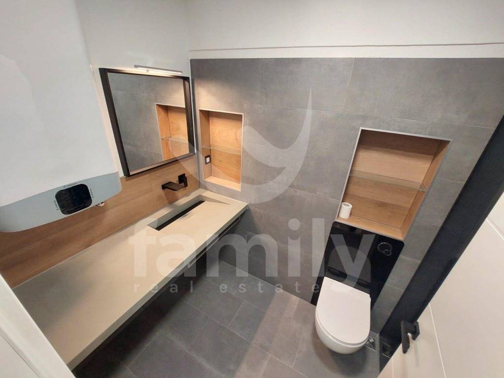The mentioned property is located on the second floor within a smaller building with a total area of 66 m2. The apartment is furnished in pleasant neutral tones and has a more modern look. A well-designed layout makes the mentioned property interesting. The windows have large openings of aluminum joinery in a light gray tone. The apartment consists of a hallway of 5.86 m2, a living room and kitchen with a total area of 15.54 m2, which is tiled, a bathroom of 5.27 m2, one spacious bedroom of 16.52 m2 and one bedroom measuring 9.60 m2 and another bathroom of only 4.08 m2 with another hallway of 2.79 m2.