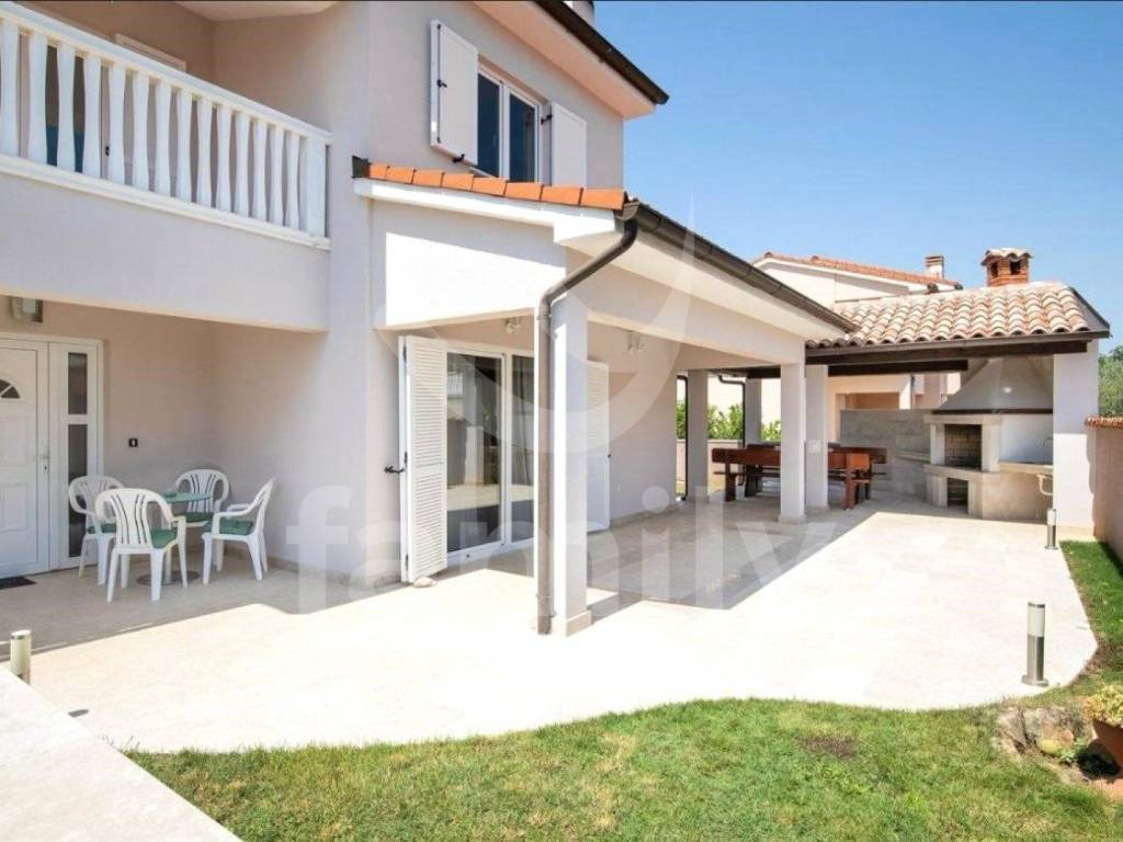 It is in a settlement called Loborika within the Municipality of Marčana that the aforementioned high-quality two-story house with a total area of 130 m2 is located, and it consists of a bright living room with access to a covered terrace equipped with a barbecue and a dining table, a quality kitchen with a dining area, and a guest toilet. An internal staircase leads to the second floor, where there are two fully equipped bedrooms with access to a balcony, as well as two bathrooms. The house was built in 2008 and was completely renovated in 2018. It has access from an asphalt road with three secured outdoor parking spaces and a garage. PVC and wooden joinery is installed throughout the building, the heating and cooling system is regulated by air conditioning and a wood-burning stove located in the living room, while the floors are covered with quality parquet and ceramics.