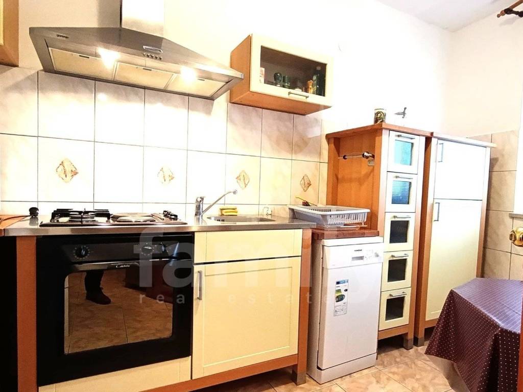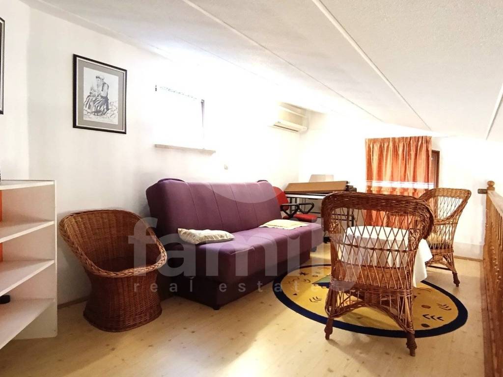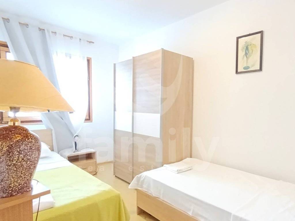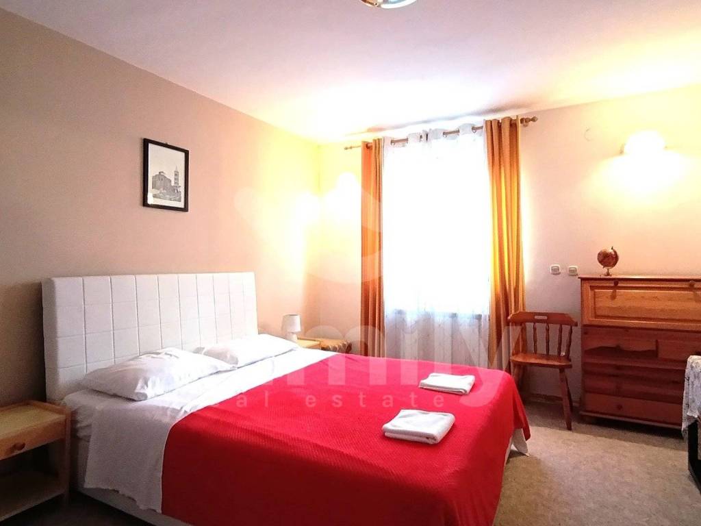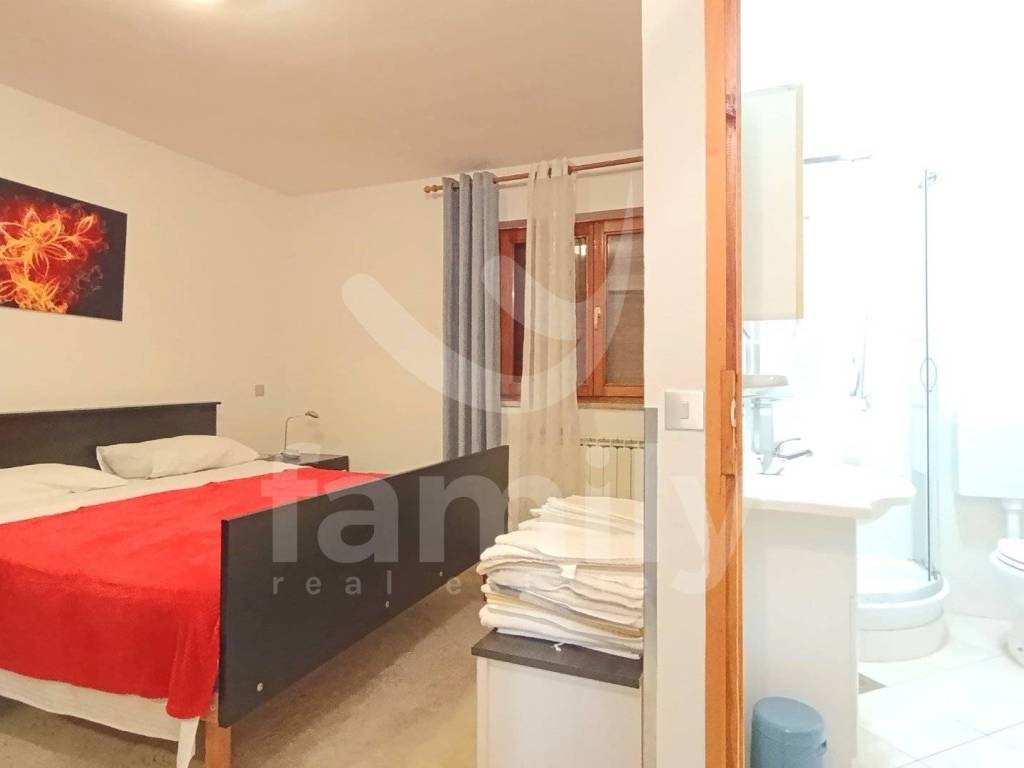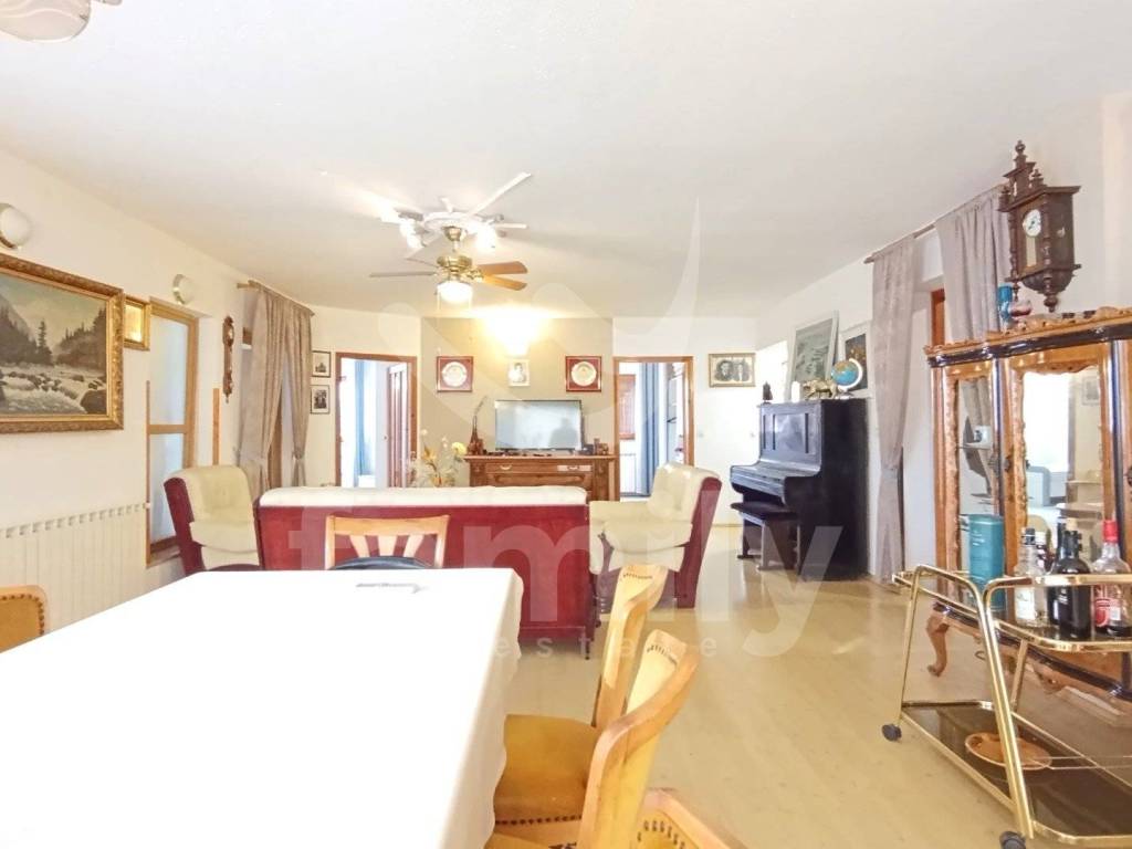 Wide external stairs lead to a long terrace that borders the apartment on the first floor on almost the entire eastern side. At the entrance there is an entrance hall from which you enter the kitchen on the right, 4 spacious double bedrooms, one of which has a large bathroom, and one large bathroom is located between the rooms and the living room. The spacious living room is divided into a dining area with a bar and access to a large loggia, and a TV lounge with a piano.