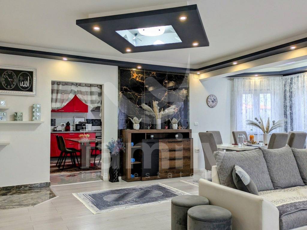 The space consists of a spacious and elegantly decorated hallway, from which you enter three beautiful and very spacious bedrooms. The central part of the house is made up of an exceptionally large and bright living room connected to the dining room, while the kitchen is separate and practically furnished. The bathroom is particularly beautifully decorated, and every detail in the house has been carefully designed to create a harmonious and pleasant space.