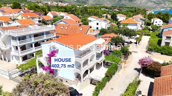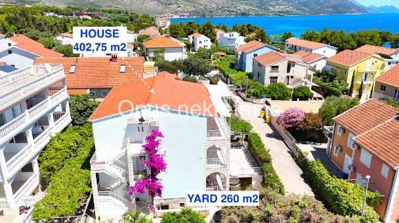Prodaje se uhodani turistički objekt ukupne netto iskoristive površine 402,75 m2 s prostranom okućnicom od 260 m2. Sastoji se od podruma, prizemlja i 2 kata, ukupno 7 apartmana i 2 zasebne sobe. Udaljen je cca 300 m od mora. Odlična investicijska prilika.