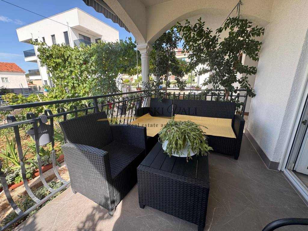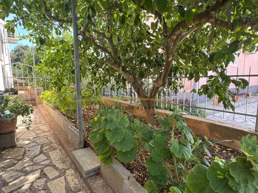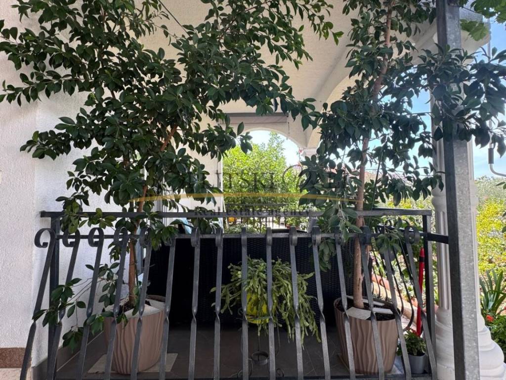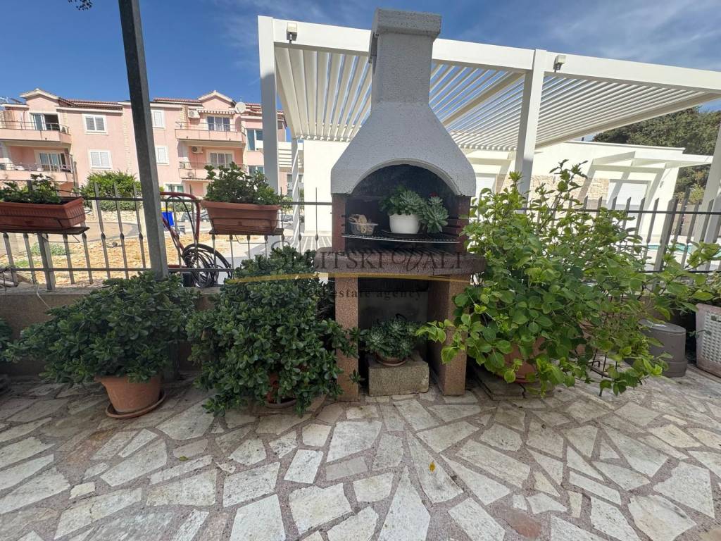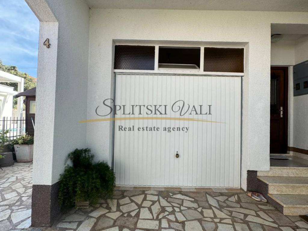Uz kuću se nalazi garaža s direktnim ulazom u stan, natkriveni kamin, kućica za alat te prostrano dvorište s uređenim vrtom u kojem se nalaze stabla voćki, mediteransko bilje i mnoštvo cvijeća, što prostoru daje ugodnu atmosferu, privatnost i mediteranski ugođaj. Osim garaže, ispred kuće postoji i dodatni prostor za parkiranje više vozila.