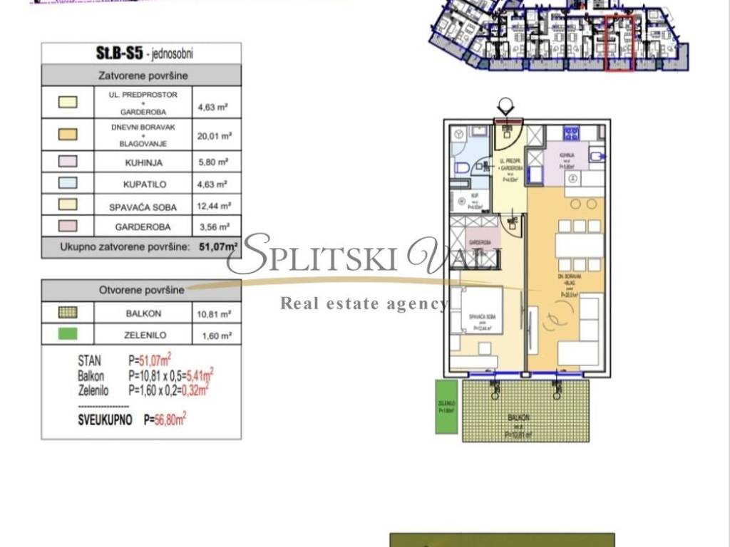 Posredujemo u prodaji luksuzne novogradnje na Duilovu. Prodaje se jednosobni stan površine 56,8m2. Sastoji se od spavaće sobe, garderobe, kupaonice, kuhinje, dnevnog boravka s blagovaonicom i balkona. Orijentacija stana je sjever-jug nalazi se na prizemlju, visini prvog kata otvorenog pogleda na more i velikih staklenih stijenki koje pružaju mnogo osvjetljenja tokom dana. Moguća je kupnja parking mjesta u garaži. Kupac plaća posredničku naknadu od 2%+pdv.