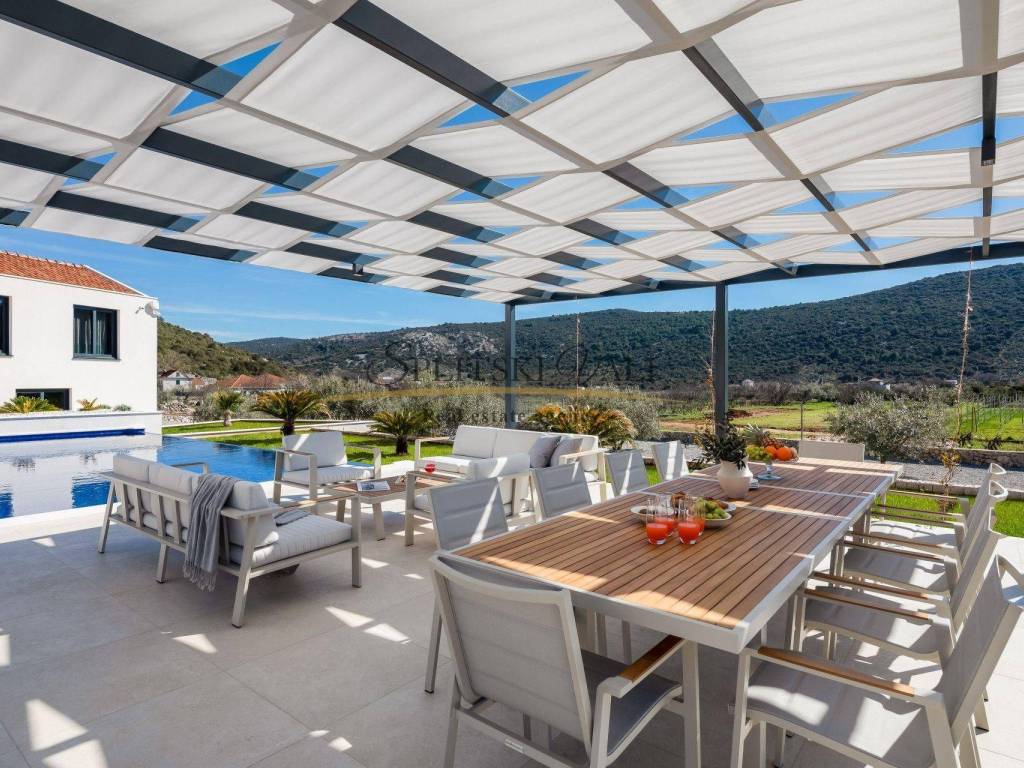 Vanjski prostor uključuje infinity bazen s hidromasažom, uz bazen nalazi se i natkrivena vanjska blagovaonica i lounge kutak te uređene zelene površine i masline.