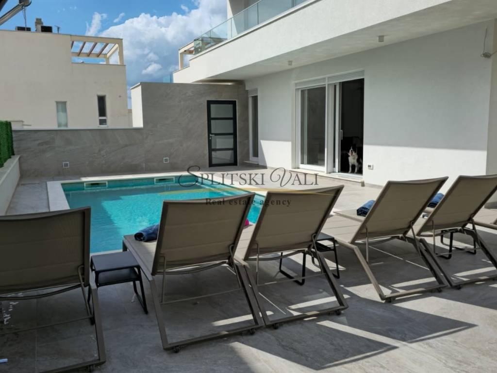 Osim četiri spavaće sobe, ova luksuzna nekretnina se sastoji od kuhinje s blagovaonicom, prostrane dnevne sobe s izlazom na terasu i vrt, 3 kupatila, jednog dodatnog WC-a i ostave. Vrt je opremljen sunčalištem, bazenom, tušem i roštiljem, pružajući savršeno mjesto za opuštanje i druženje.