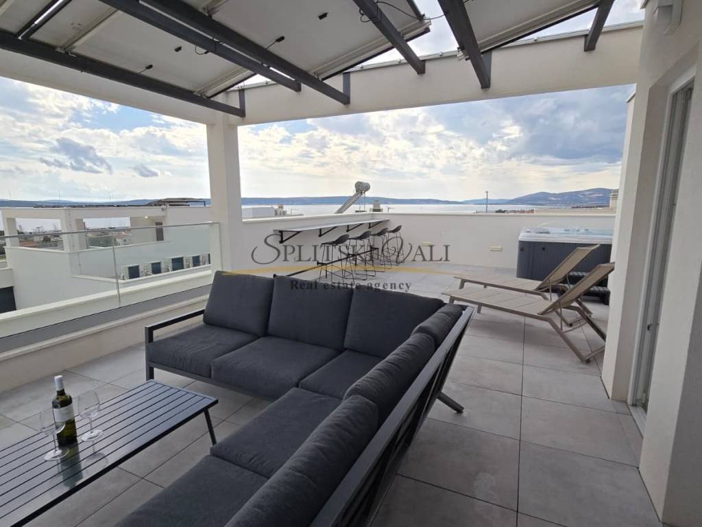 Sa druge etaže ove nekretnine se izlazi na krovnu terasu s jacuzzijem i panoramskim pogledom na more, pružajući jedinstveni prostor za uživanje na otvorenom.
