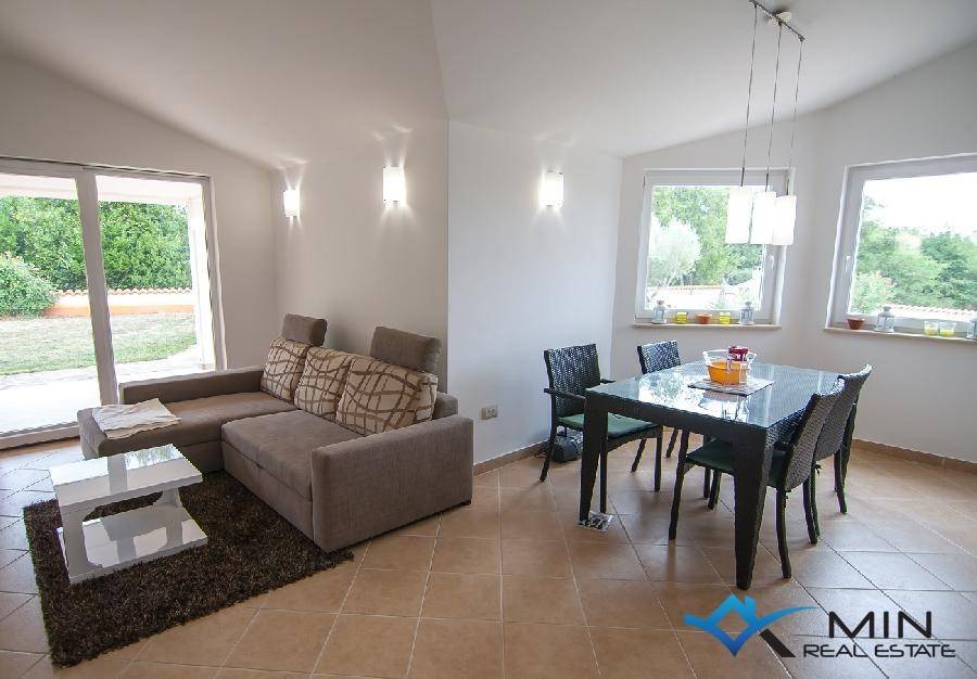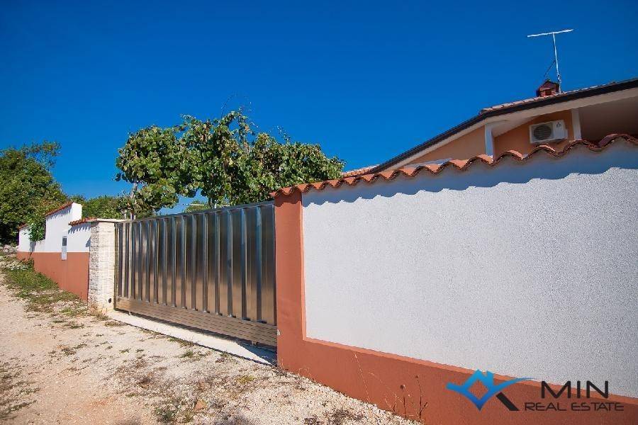 House with swimming pool and large garden - Umag: The house is located only 500 m from the sea in a quiet location near Umag. It is located on the edge of the urbanized area, so it has its own peace. The surrounding pitch is a high wall that provides additional security and privacy. The garden is nicely decorated, has parking space for about 8 cars and a large swimming pool of approx. 40 m2. The house is divided into 3 apartments. On the ground floor there is a garage and a small apartment which consists of kitchen, dining room, living room, bedroom, bathroom and covered terrace. The high ground floor consists of 2 apartments, each consisting of a hallway, kitchen, dining room, living room, bathroom, 2 bedrooms and covered terraces. In the basement there is another area that has a wine cellar, bathroom and space for wellness and playroom. Around the pool there is a well-kept beach, a fireplace, a shower and a covered terrace. The house has a store rainwater, which is connected to the irrigation of the garden. Distance from the sea or beach is about 500 - 600 m, and to the center of Umag 5 km. The house is perfect for a large family, but because of the location and the equipment has a good possibility of renting over the season. Beautiful house for sale with swimming pool and large garden in a quiet location near the sea in the vicinity of Umag.