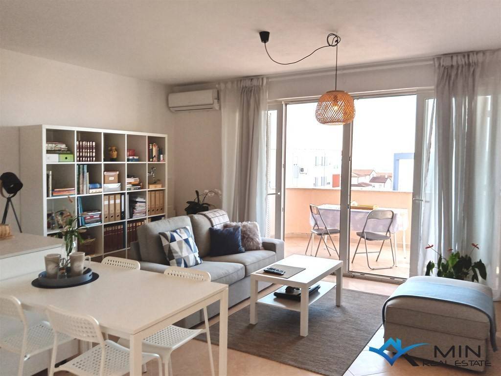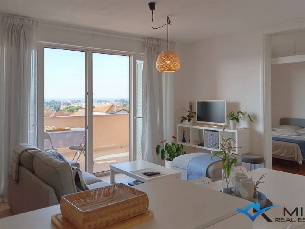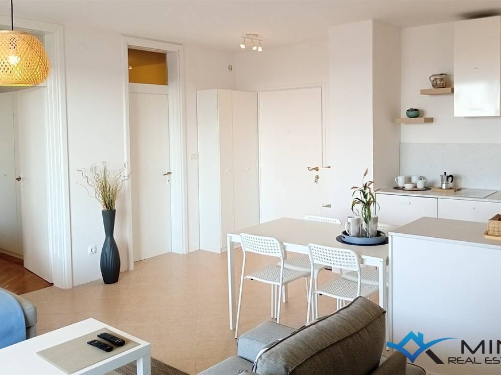 One-room apartment for sale, 700 m from the sea and a beautifully landscaped beach, and 1200 m from the city center. The apartment is located on the 2nd floor of a building with a total of 9 apartments. The apartment consists of a bathroom, a bedroom and an open space where there is a kitchen with a dining room and a living room with access to a large terrace of 17 m2 with a beautiful view of the sea. The apartment has 1 parking space and a storage room on the ground floor of the building. The apartment can be used for residential or tourist purposes.