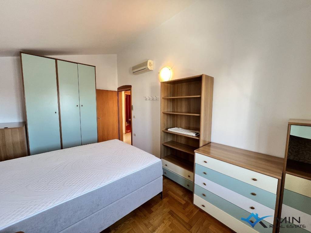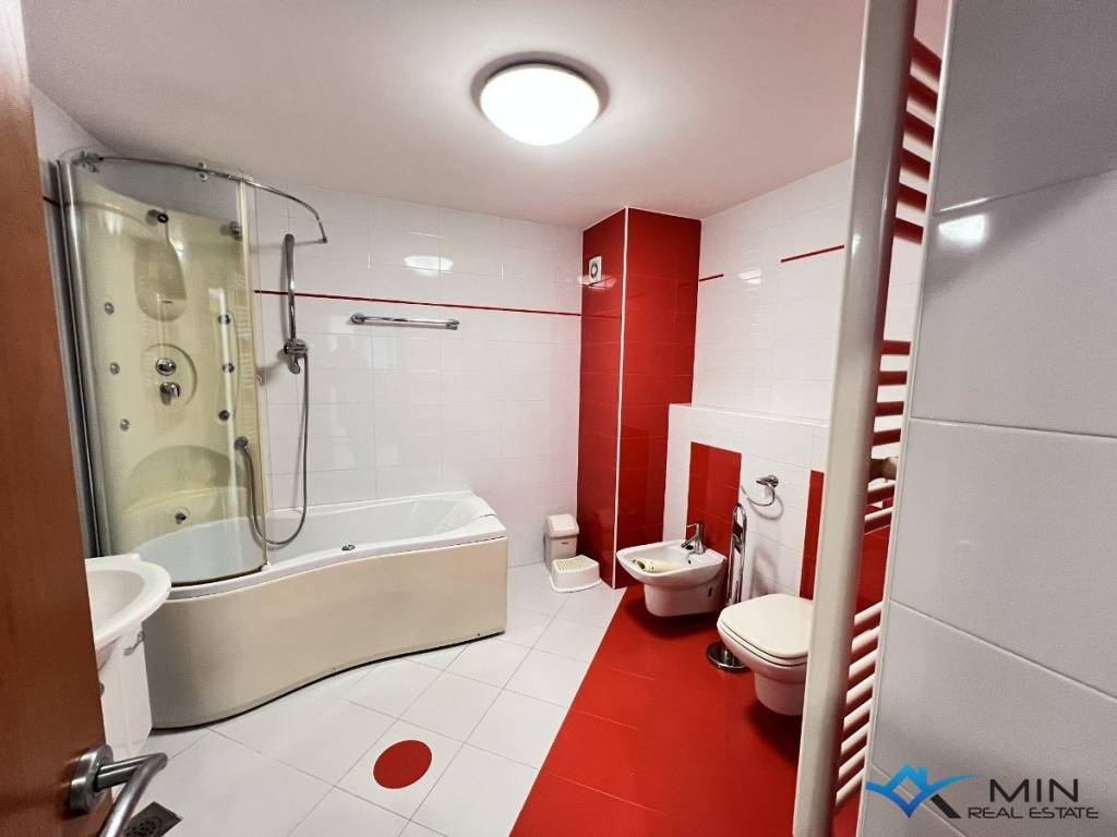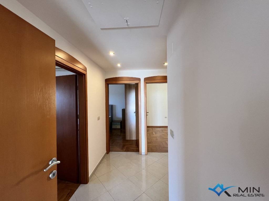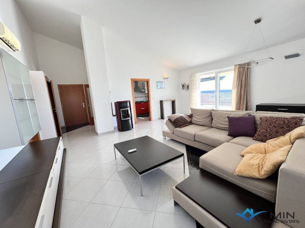 For sale is a spacious apartment located on the 2nd floor of a residential building. The apartment is located in a quiet location 1,500 m from the city center and 1,200 m from the sea and a beautiful beach. The apartment has a total square footage of 178 m2, and after calculating all coefficients (balcony, garage) it has 136.95 m2. The apartment consists of an entrance hall, a toilet, a bathroom, 3 bedrooms, a kitchen and an open space where there is a living room with access to a large balcony of 52 m2. The balcony offers a panoramic view of the sea. The apartment has a garage of 18.70 m2 located on the ground floor of the building and 1 parking space. Heating and cooling in the apartment is via air conditioning, floor heating in the living room and a pellet stove. The apartment can be used for residential or tourist purposes.