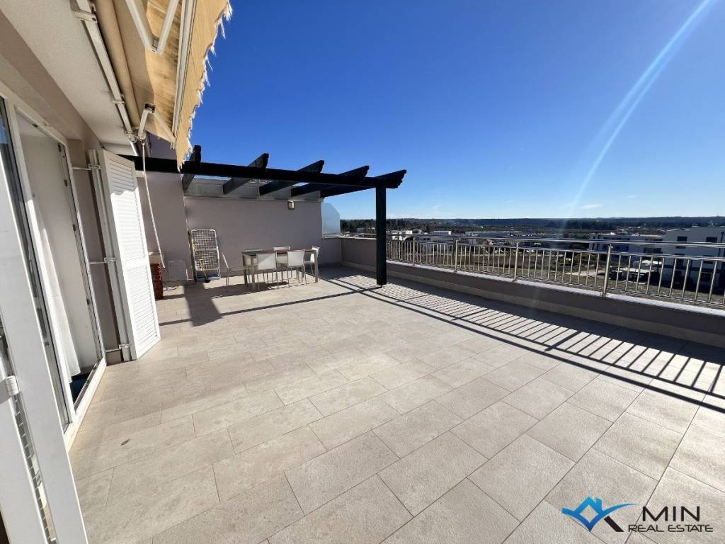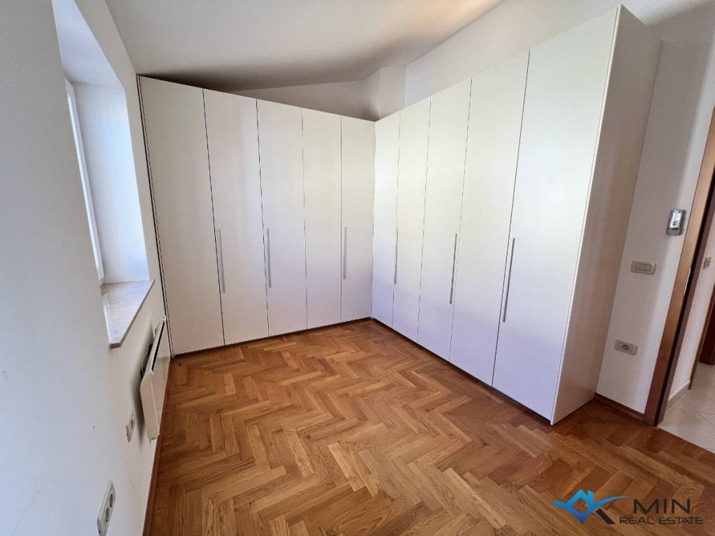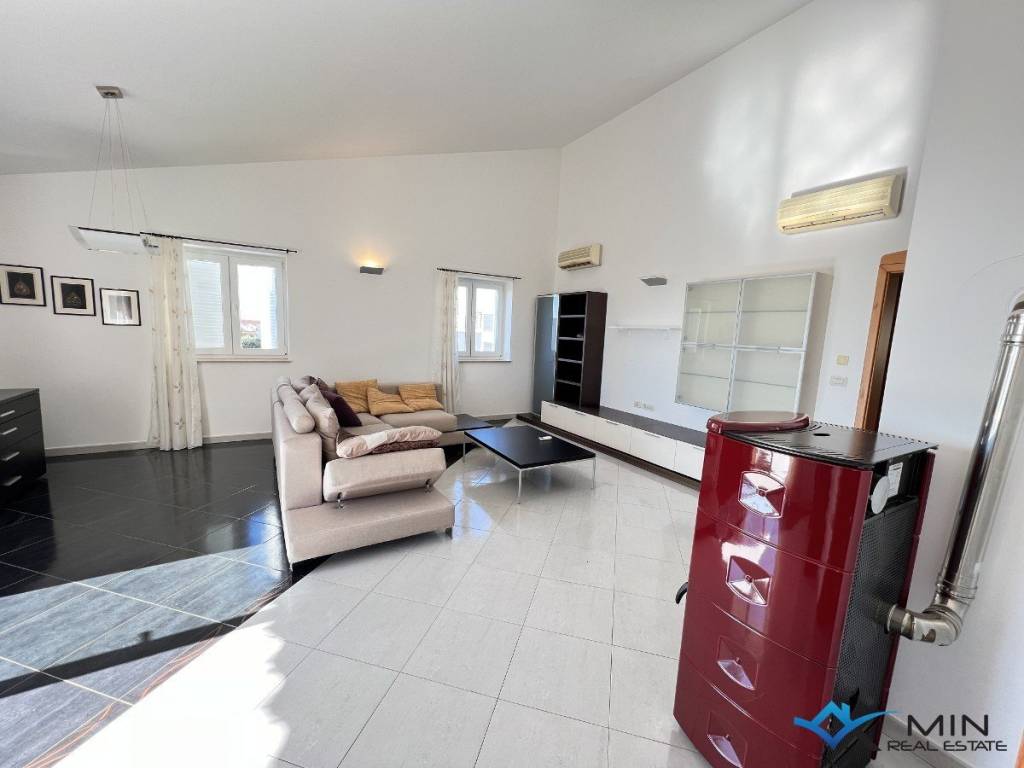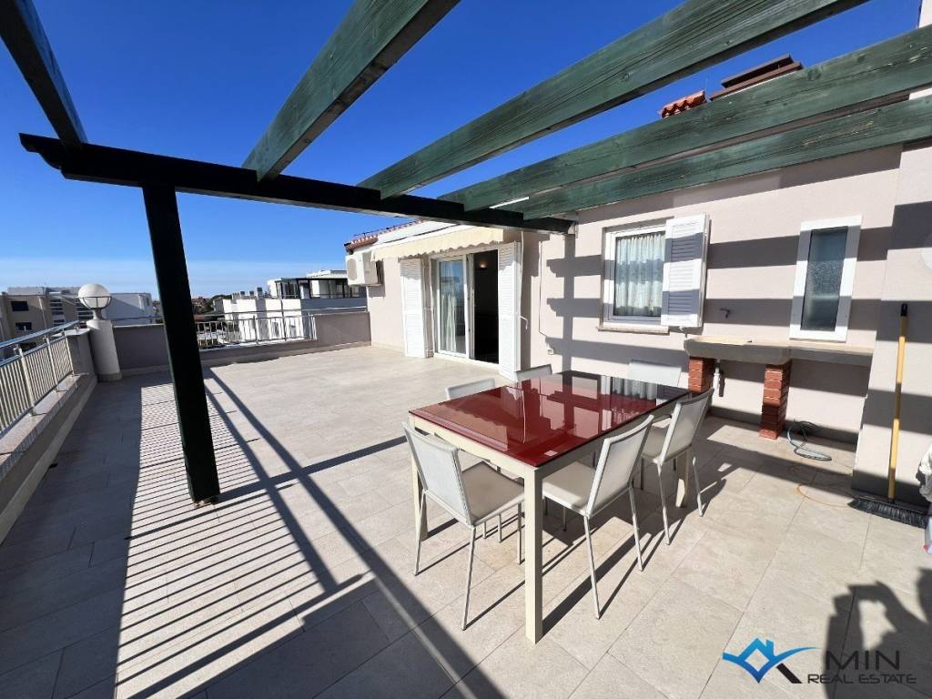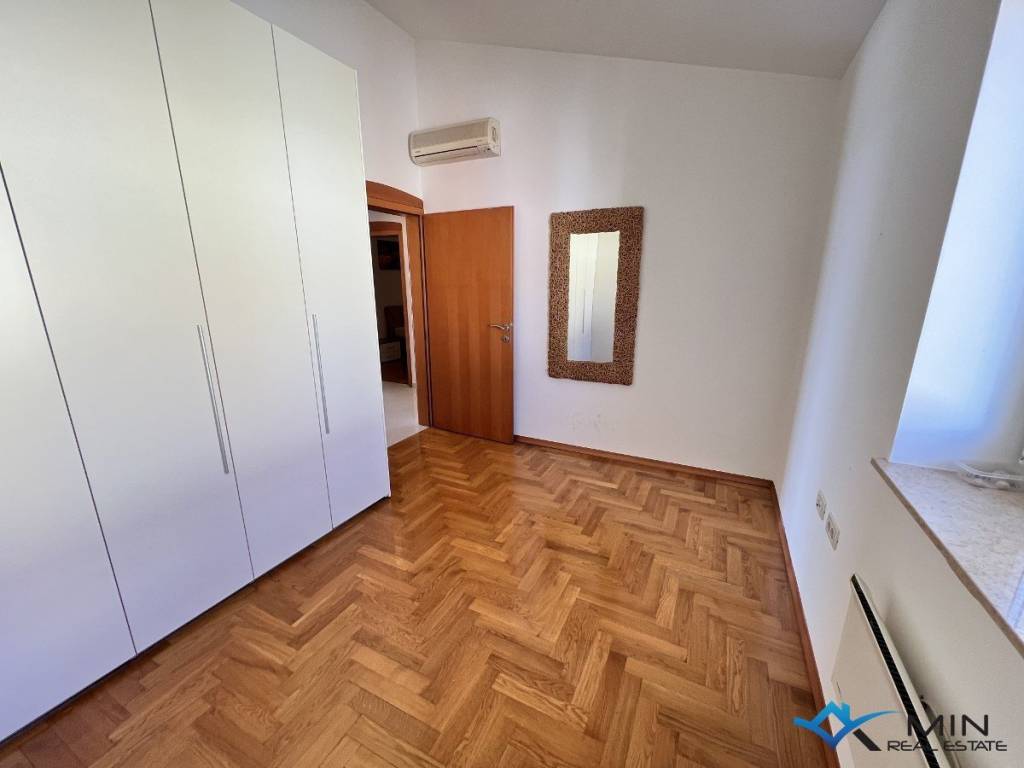 For sale is a spacious apartment located on the 2nd floor of a residential building. The apartment is located in a quiet location 1,500 m from the city center and 1,200 m from the sea and a beautiful beach. The apartment has a total square footage of 178 m2, and after calculating all coefficients (balcony, garage) it has 136.95 m2. The apartment consists of an entrance hall, a toilet, a bathroom, 3 bedrooms, a kitchen and an open space where there is a living room with access to a large balcony of 52 m2. The balcony offers a panoramic view of the sea. The apartment has a garage of 18.70 m2 located on the ground floor of the building and 1 parking space. Heating and cooling in the apartment is via air conditioning, floor heating in the living room and a pellet stove. The apartment can be used for residential or tourist purposes.