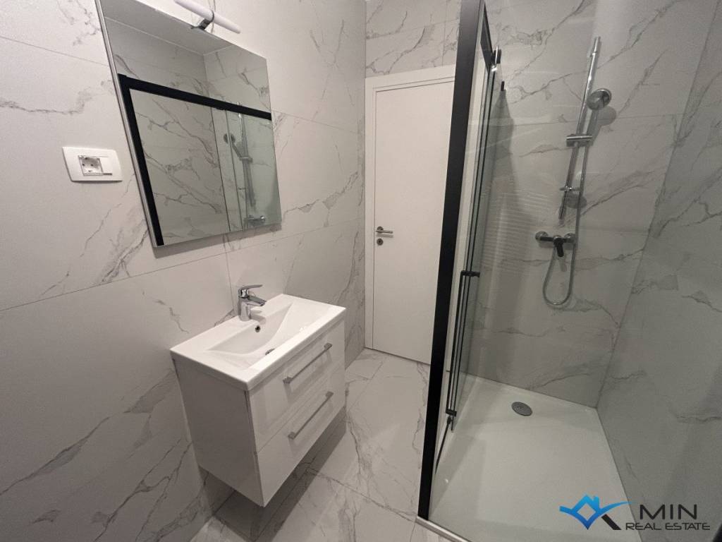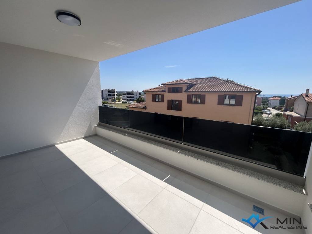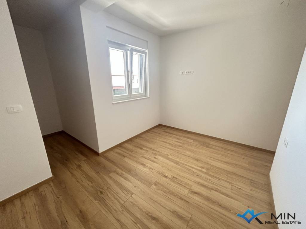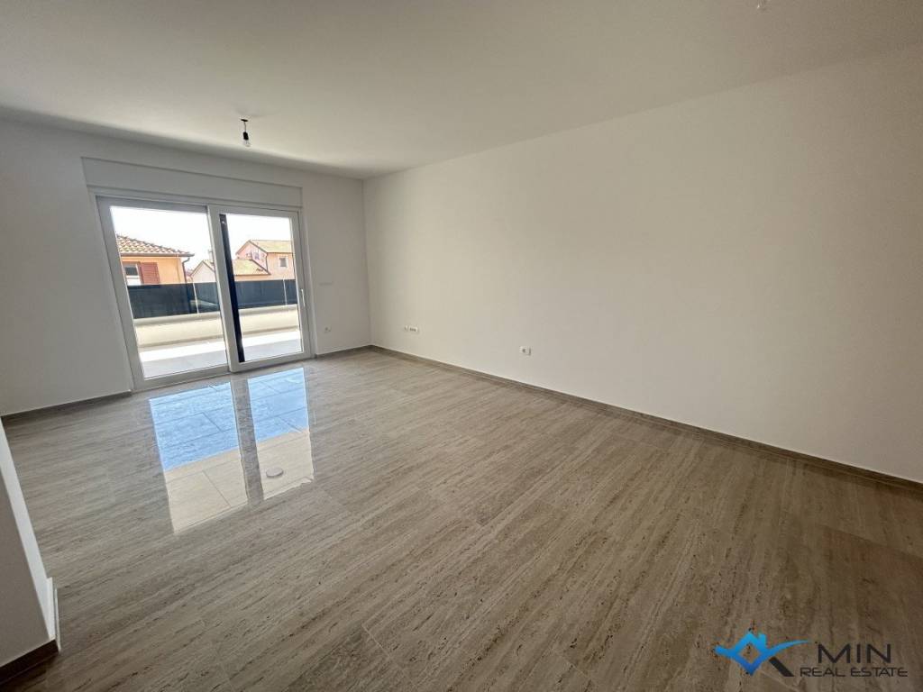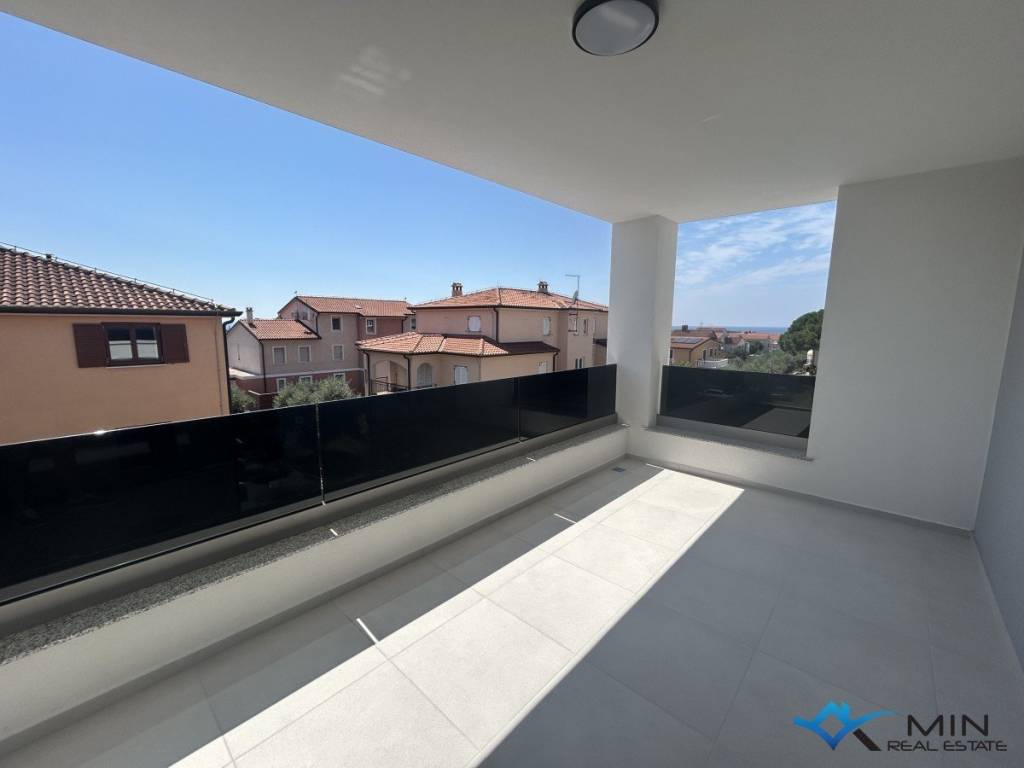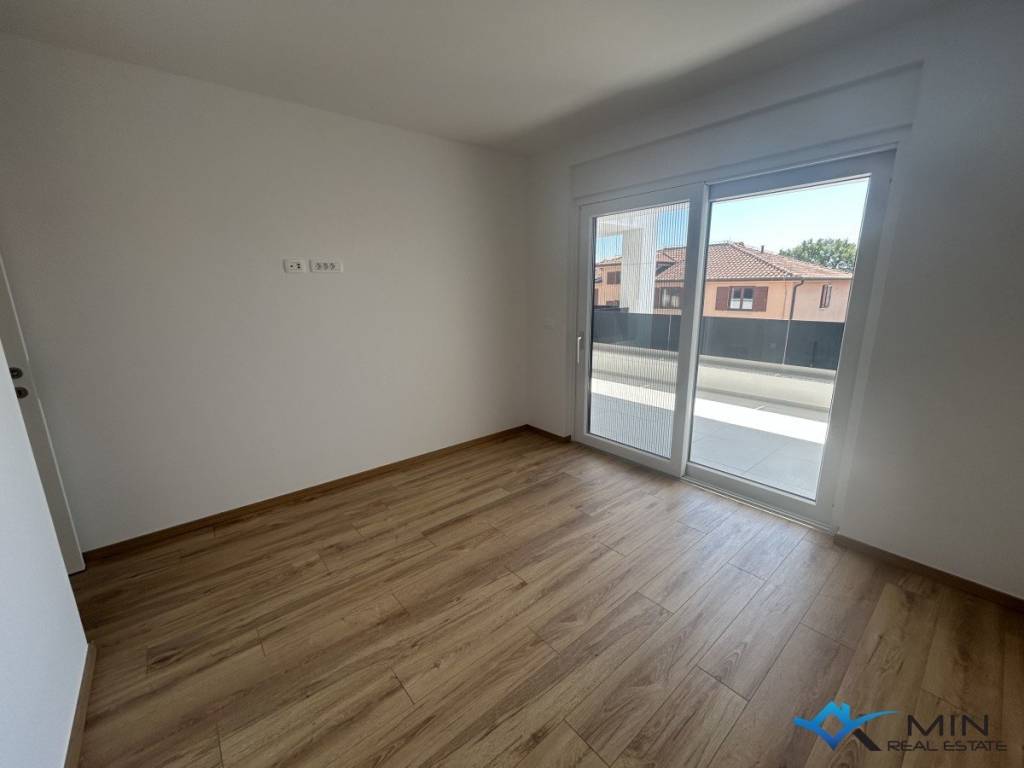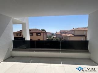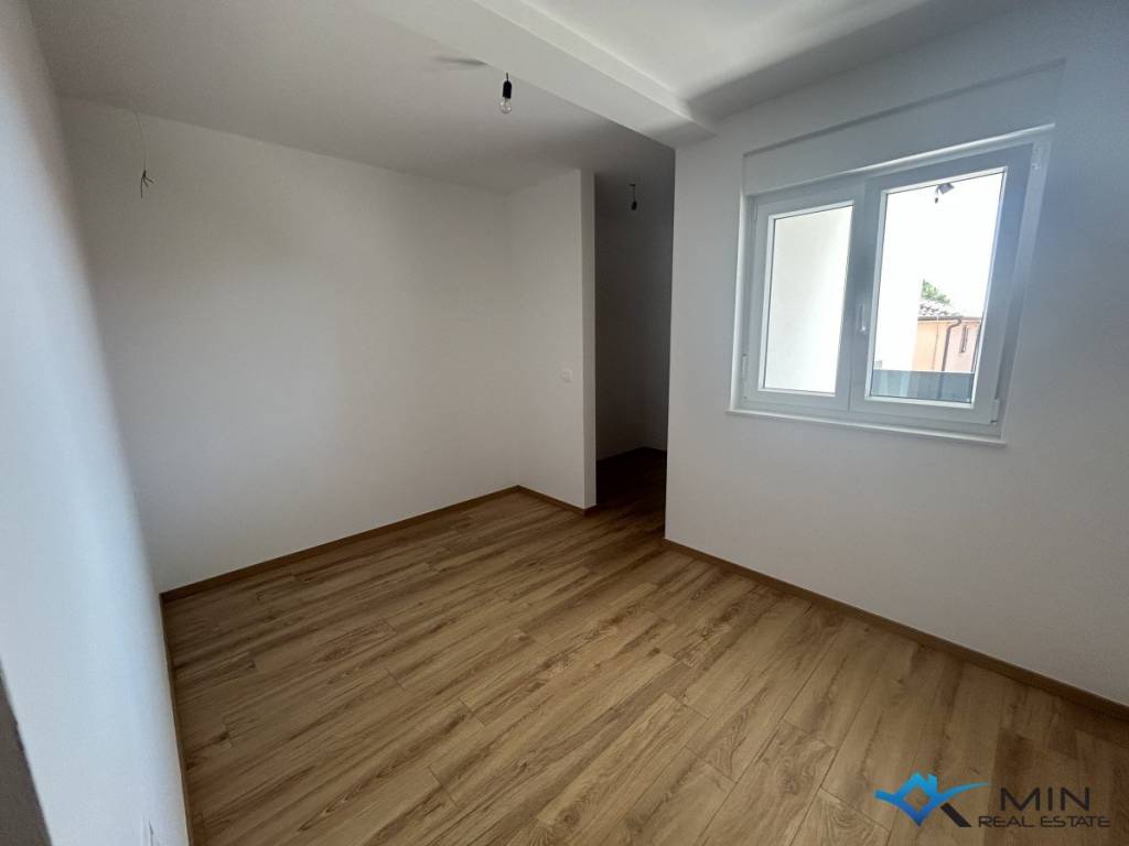 Newly built apartment for sale in a quiet location in Novigrad, 800 m from the sea and a beautifully landscaped beach, and 1000 m from the center of Novigrad. The apartment is located on the 1st floor of a building with a total of 8 apartments. The apartment is 91.81 m2 and consists of a hallway, 2 bathrooms, 2 bedrooms with access to the loggia and an open space where there is a kitchen with a dining room and a living room with access to another loggia with a beautiful view of the sea. . Heating and cooling in the apartment is via underfloor heating in the bathroom, air conditioning and a chimney, so there is a possibility of installing a fireplace or pellet stove. The apartment can be used for residential purposes.