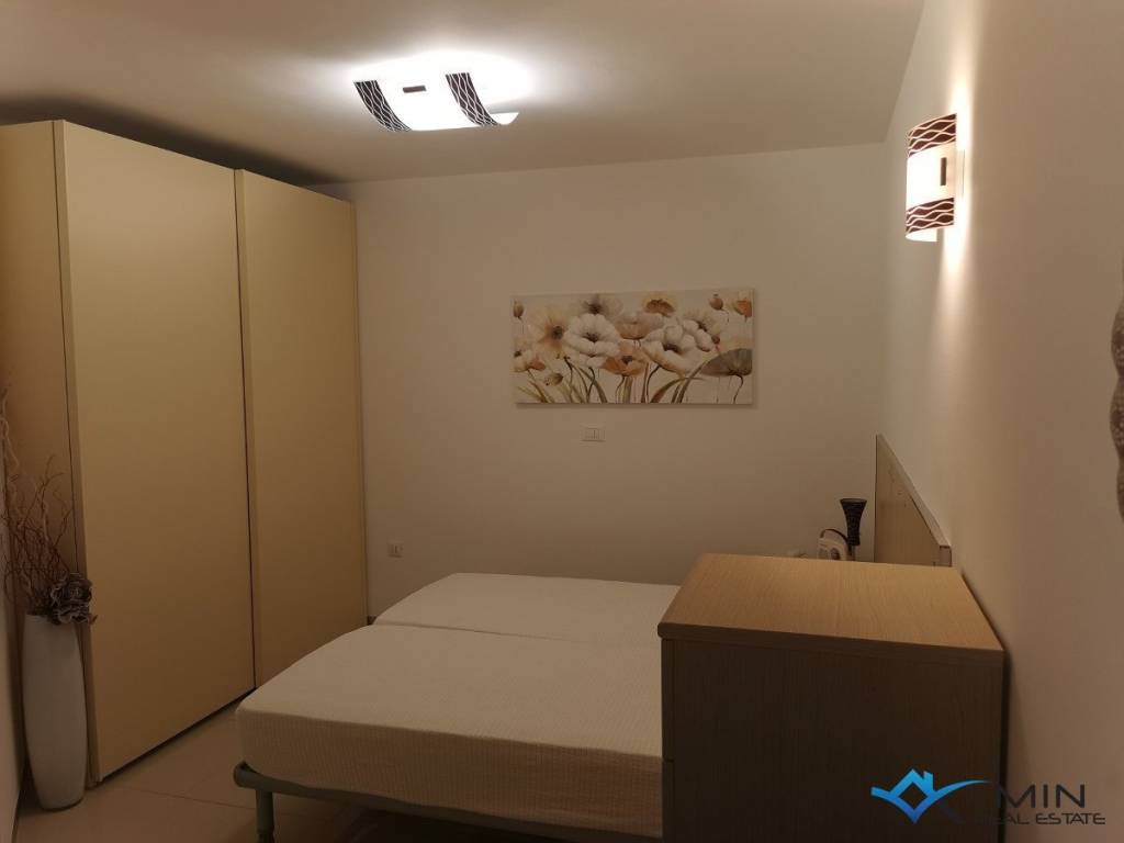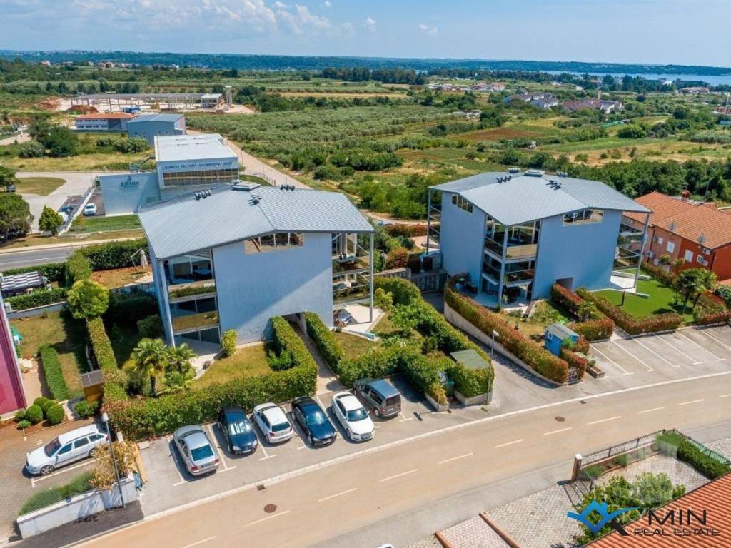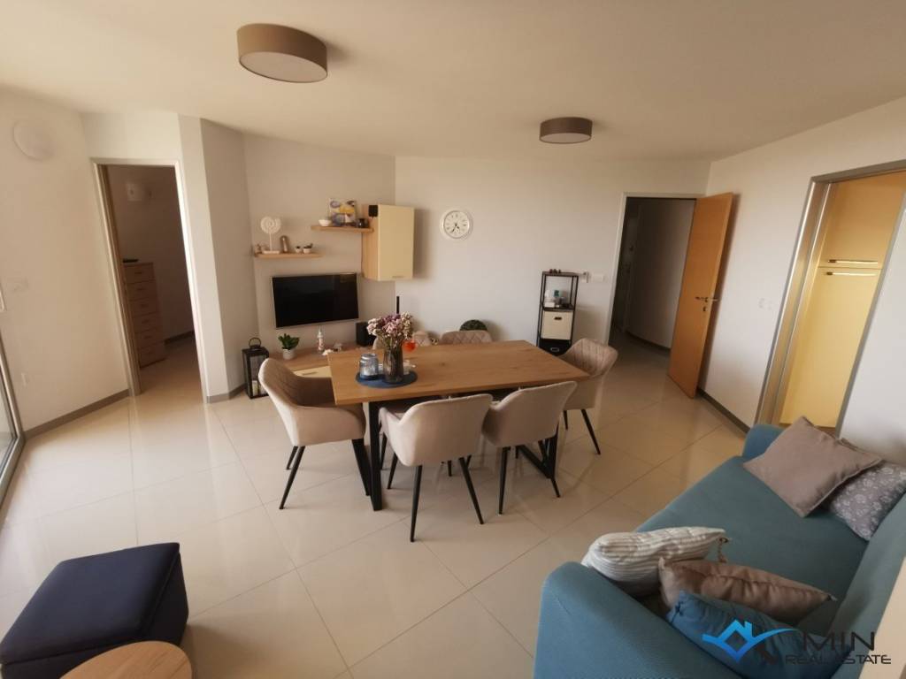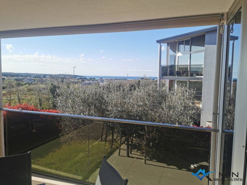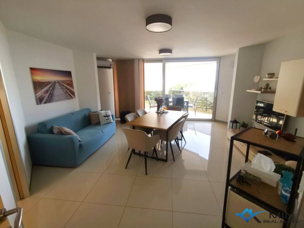 Opportunity to buy an apartment with a garage in a quiet location in Novigrad. The apartment is located on the 1st floor of a building with an elevator. The apartment has 64 m2 and consists of a hallway, storage room, bathroom, kitchen and dining room, 2 bedrooms and a living room with access to a covered terrace with a beautiful sea view. Both bedrooms have their own separate access to the terrace, which provides additional comfort. There is underfloor heating throughout the apartment, and cooling is via air conditioning. The apartment includes a parking space in the garage and a storage room of 9 m2.