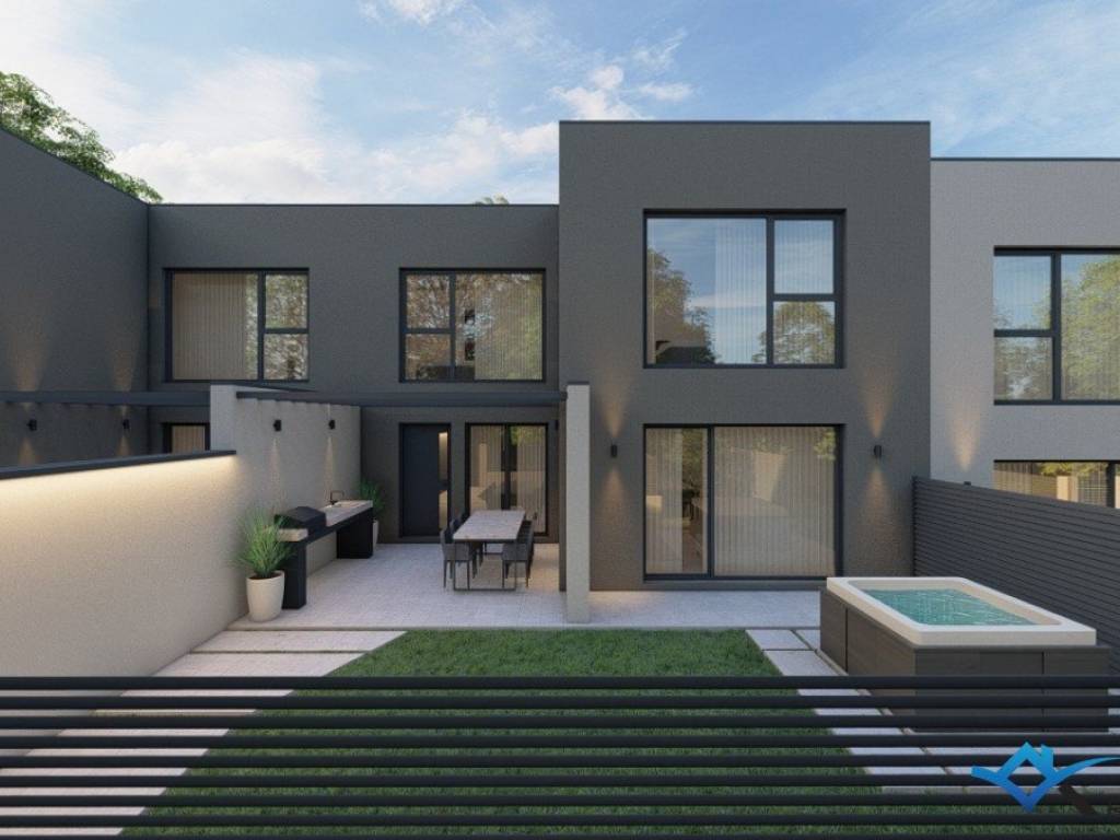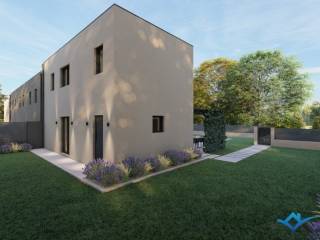 A modern terraced house for sale in the vicinity of Novigrad. The house is currently under construction and is 3500 m from the center, the sea and a beautifully decorated beach. The house has 93 m2 and is divided into 2 floors. The ground floor consists of a hallway, toilet, kitchen with dining room and living room with access to the terrace. The first floor consists of a hallway, 3 bedrooms and 2 bathrooms. The house has a garden of 245 m2 with a swimming pool. The house has 2 parking spaces.