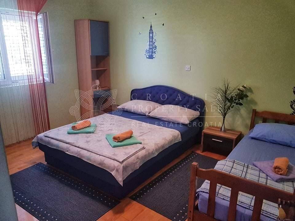 Croatia Trogir area apartment sea view house for sale consists of 4 apartments, loundry room, kids playroom, basement, attic floor and has almost 400 sq.m.Surface of the parcel is 350 sq.m. House consists of 4 apartments completely furnished: there is 1 apartment with 3 bedrooms, there are 2 apartments with 2 bedrooms each, and 2 apartments with 1 bedroom each (one of these apartments is turned into kids play room and loundry room). Balconies offer beautiful panoramic sea view of the south.