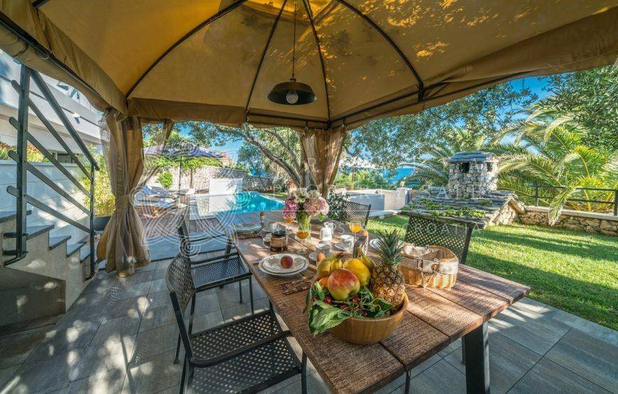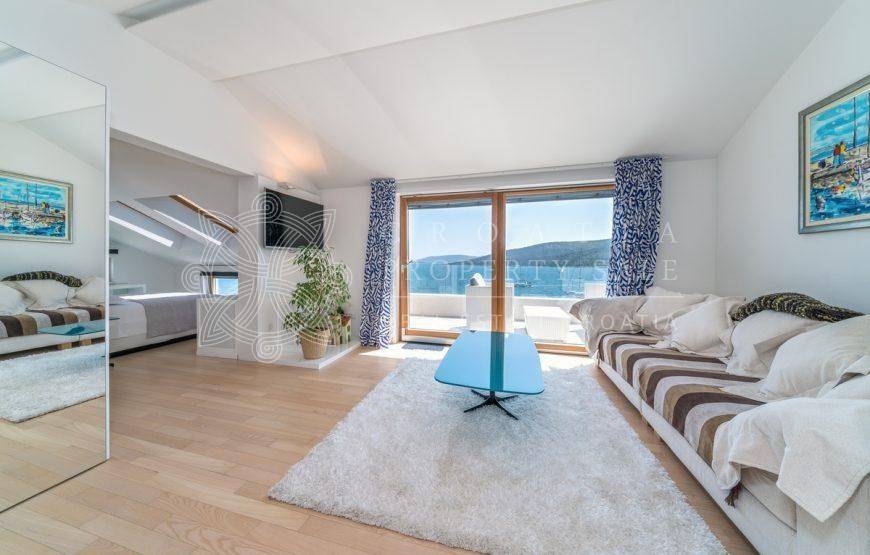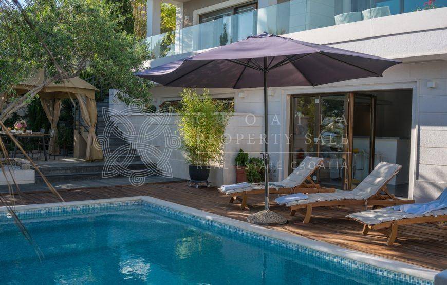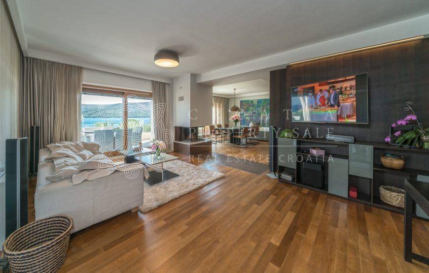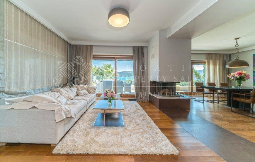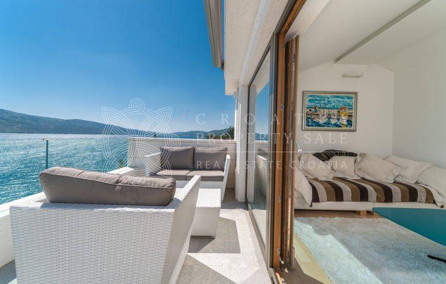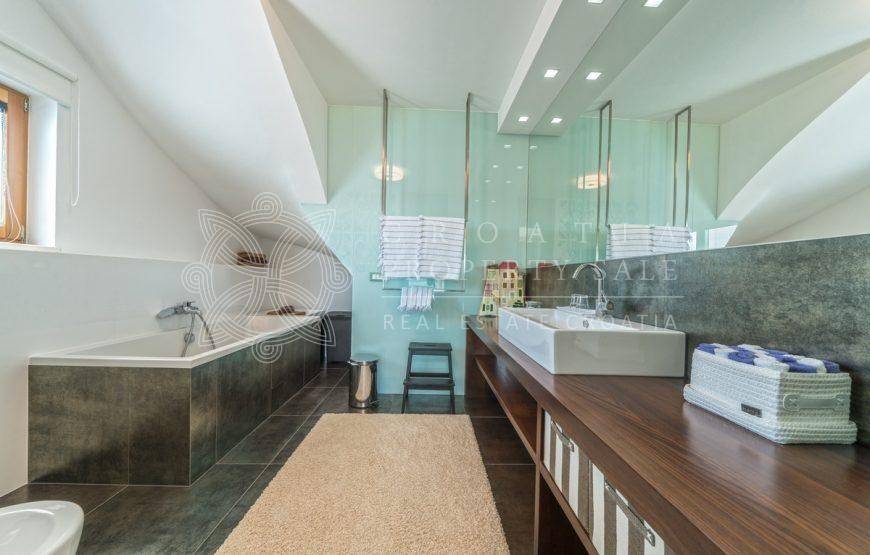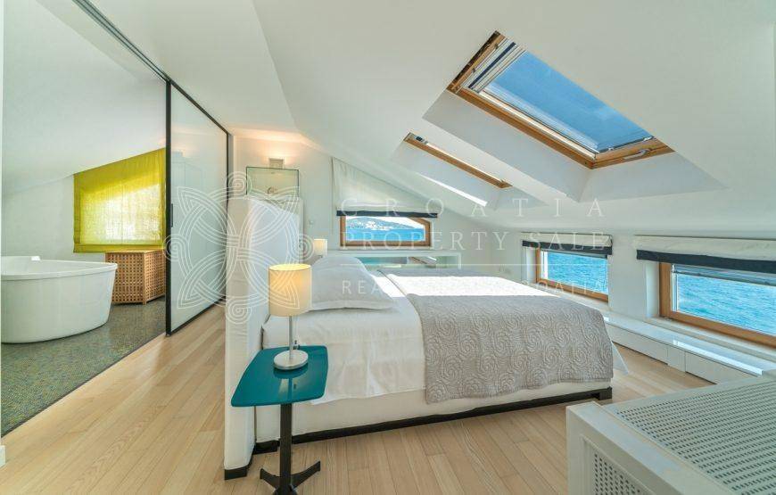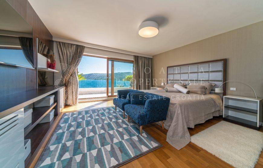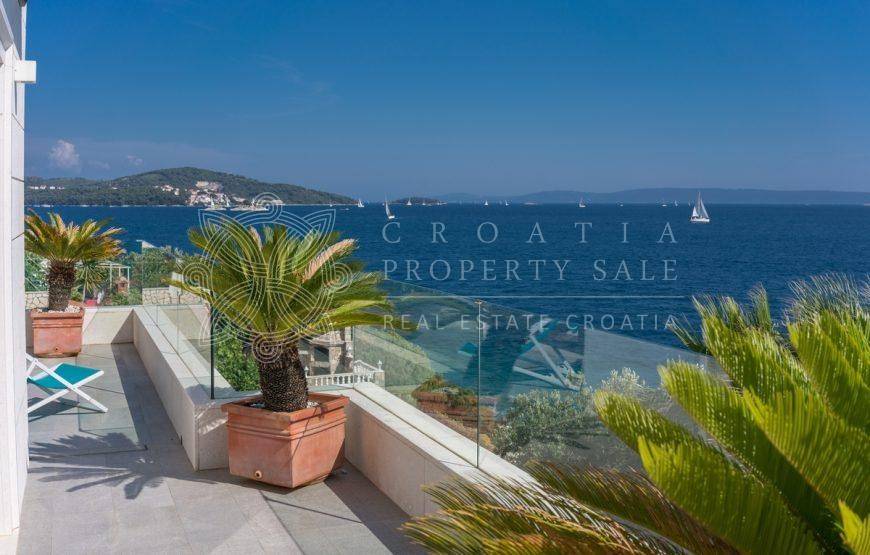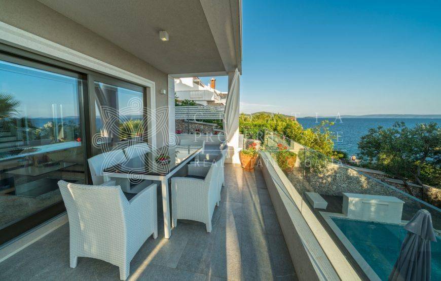 Croatia Trogir area waterfront luxury villa for sale has 350 sq.m. and it is a wonderful example of the perfect harmony between contemporary architecture and surrounding nature.