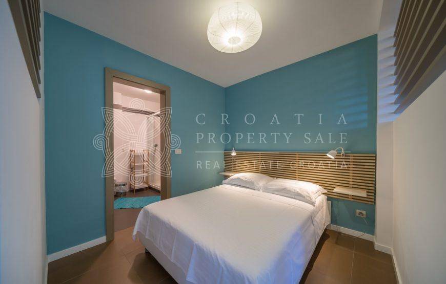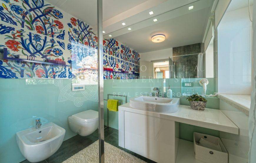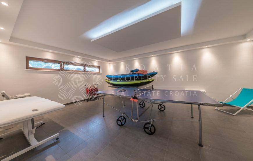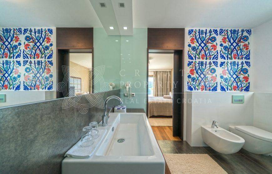 The interior offers three carefully designed bedrooms with private bathrooms and handmade furniture, a spacious living room, and a modern equipped kitchen. There is a separate part of the villa which consists of 2 separate suites and a table tennis room. It is fully air-conditioned and has floor heating. Like a true oasis of peace and tranquility, this luxurious villa will provide the ideal sanctuary for all admirers of the Mediterranean climate. Price for Croatia Trogir area waterfront luxury villa for sale is on request.