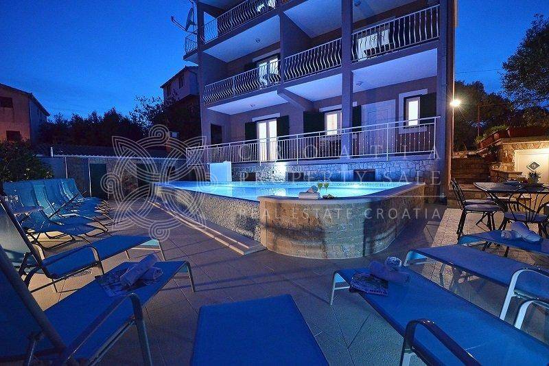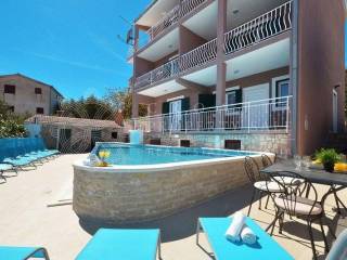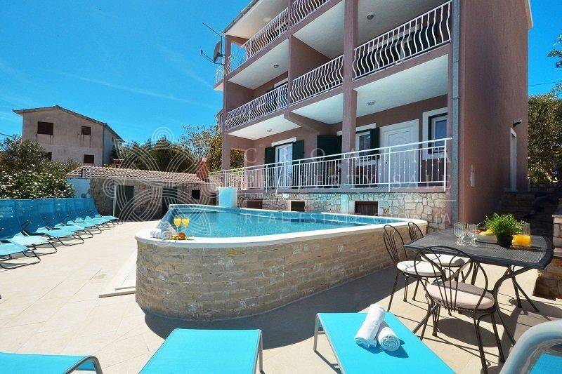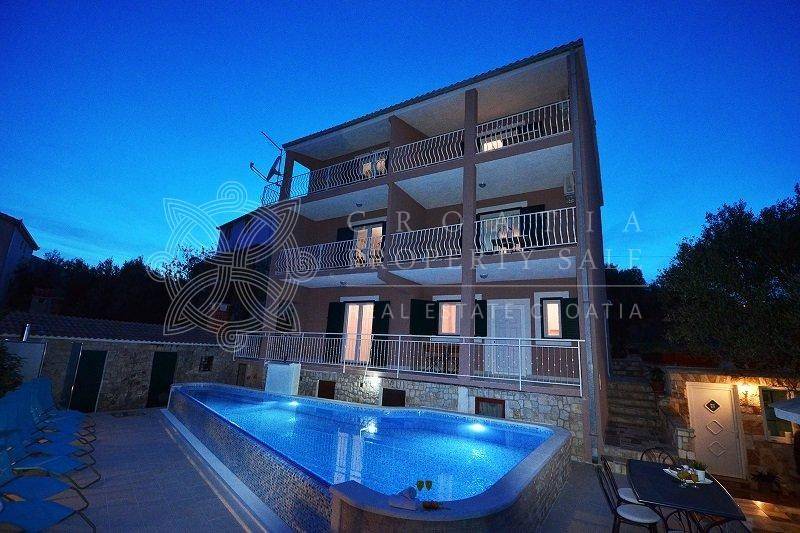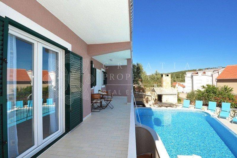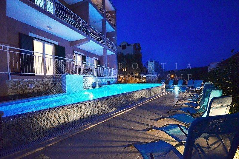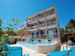 Croatia Trogir Ciovo sea view house with pool sale offers spacious living across three floors, with a total residential area of 300 square meters and a plot size of 600 square meters. The house features 5 apartments, plus an additional separate apartment.