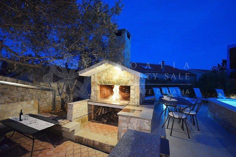Located just 300 meters from the sea, the property offers stunning views of the Adriatic. It is fully equipped and includes a large outdoor living area, an outdoor fireplace, and a swimming pool with a spa area and small waterfall. The house also provides ample parking for up to six cars, a pantry, and a tavern. This property is an excellent investment opportunity, perfect for rental purposes. Price for Croatia Trogir Ciovo sea view house with pool sale is 650 000 EUR.