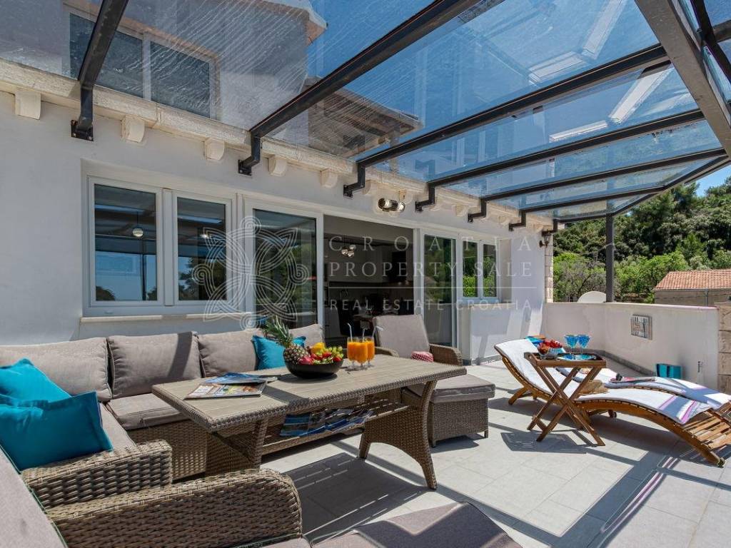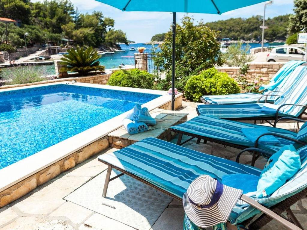 The location of this villa is truly exceptional, boasting verdant surroundings and views of the beautiful bay with shimering sea water. Nestled in a tranquil environment with only a few neighboring houses, it is situated in a picturesque bay that remains sheltered from all winds. Here, you can relax in the serenity and embrace the natural beauty that surrounds you. An excellent restaurant and convenience of a small supermarket located within the bay are at a minute walk from this villa. For larger shopping ventures and exploration, the charming coastal town of Vela Luka is just a short distance away, offering a wealth of amenities and cultural experiences. Price for Croatia Korcula island beachfront villa for sale is 1 700 000 EUR.