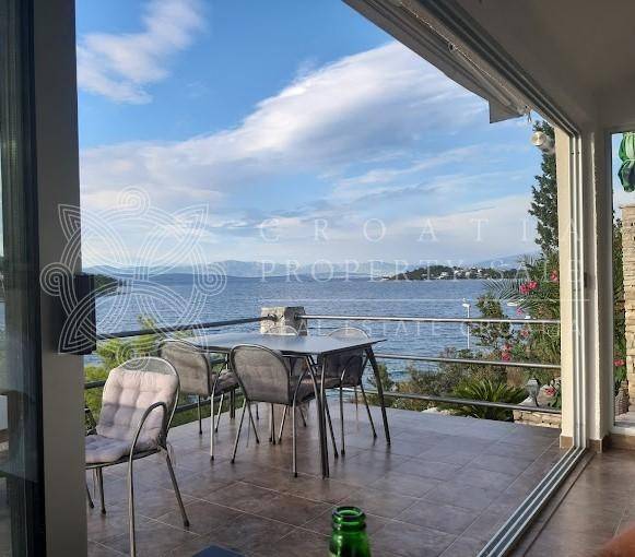 Villa occupy about 250 m2 on the large land plot of almost 1000 m2. In front of villa there is large mooring for a boats, above is large parking and garage at street level. This is dead end street which ends at 80 meters further from this villa, and new walk promenade by the sea continues. Mooring a boat is possible all year round for free. This bay is protected from wind and many sailing boats are moored in the bay over the winter.