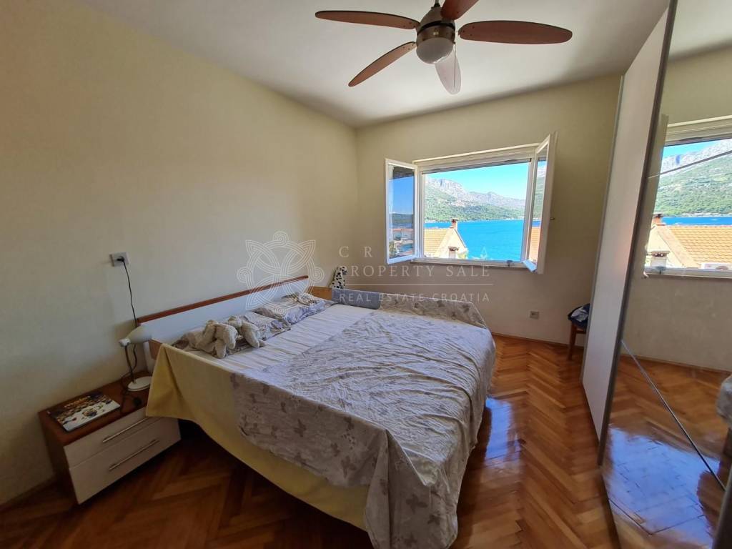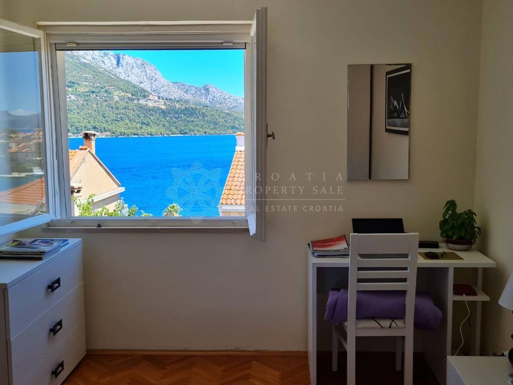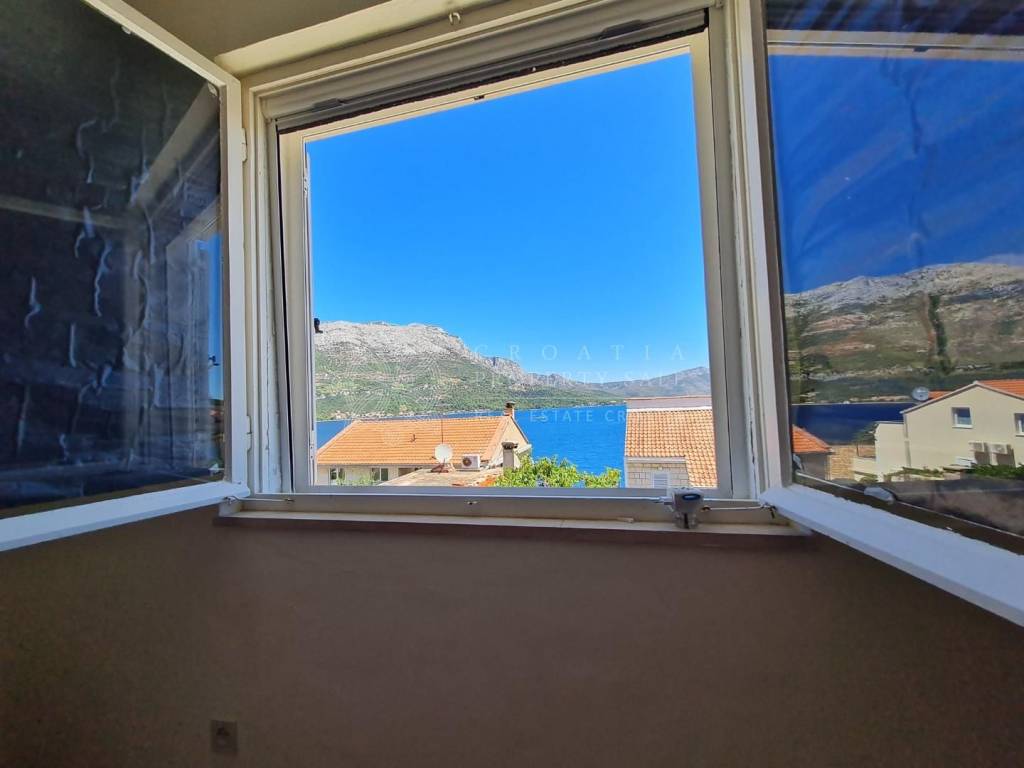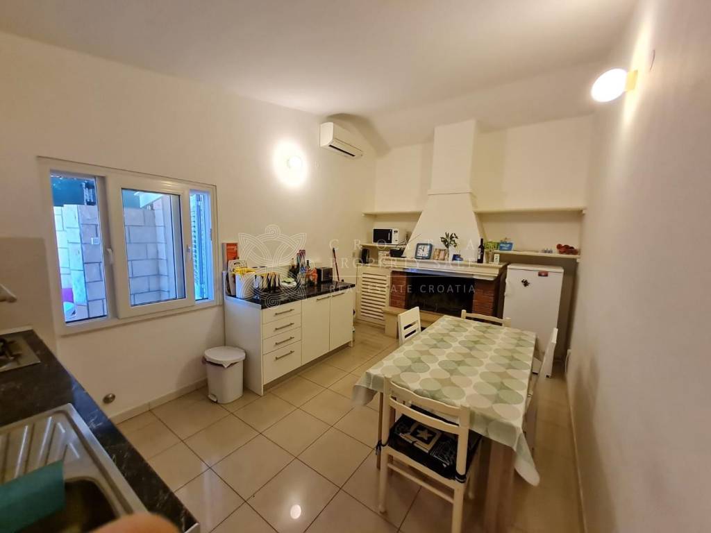 House is only 70 meters from the sea! The nearest beach is only about 200 meters from the house, while the old town of Korcula is about 400 meters away on foot. It takes about 5 minutes by car to reach a large newly built supermarket, next to which there is also a gas station and a car wash. The house offers a beautiful view of the natural beauties of the Korcula Channel and the Peljesac peninsula, but also of the cultural beauties of the walled old town of Korcula. The house has as one two-bedroom apartment and one one-bedroom apartment, so total 3 bedrooms and 2 bathrooms in this semi-detached house with garage and small backside garden. Around the house there are two terraces, one of which is covered and has an area of 20m2, while the other is 30m2. The house also has a small garden perfect for those who like to grow their own vegetables. The house is air-conditioned with 4 air conditioners and has 3 large pantries. The house is fully furnished, but the furniture is not included in the price.