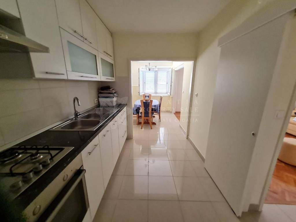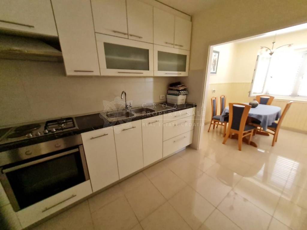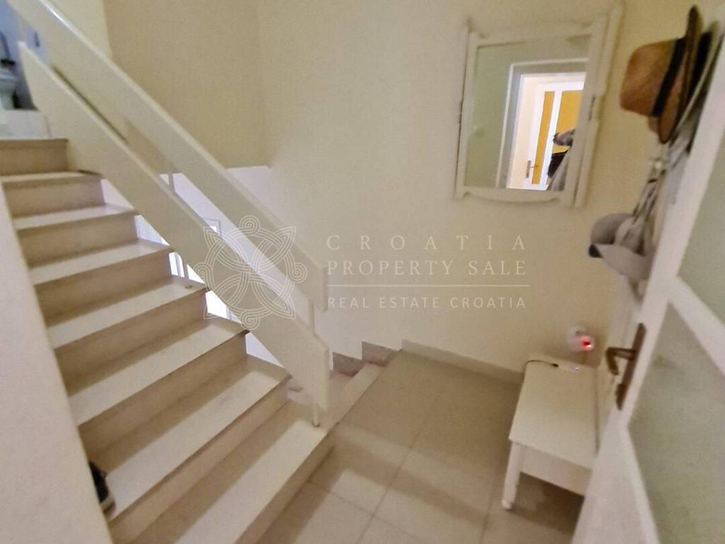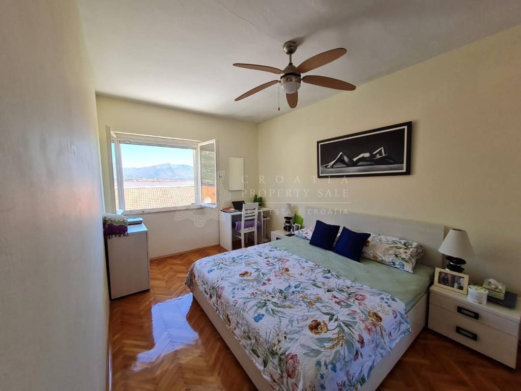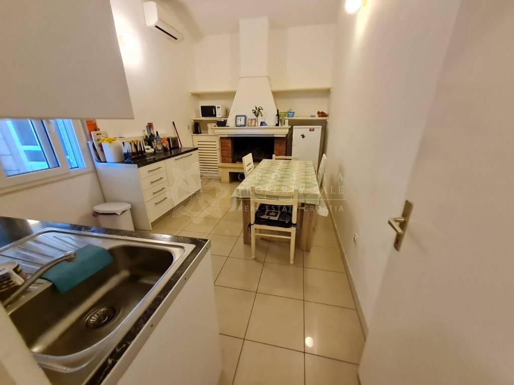 House is only 70 meters from the sea! The nearest beach is only about 200 meters from the house, while the old town of Korcula is about 400 meters away on foot. It takes about 5 minutes by car to reach a large newly built supermarket, next to which there is also a gas station and a car wash. The house offers a beautiful view of the natural beauties of the Korcula Channel and the Peljesac peninsula, but also of the cultural beauties of the walled old town of Korcula. The house has as one two-bedroom apartment and one one-bedroom apartment, so total 3 bedrooms and 2 bathrooms in this semi-detached house with garage and small backside garden. Around the house there are two terraces, one of which is covered and has an area of 20m2, while the other is 30m2. The house also has a small garden perfect for those who like to grow their own vegetables. The house is air-conditioned with 4 air conditioners and has 3 large pantries. The house is fully furnished, but the furniture is not included in the price.