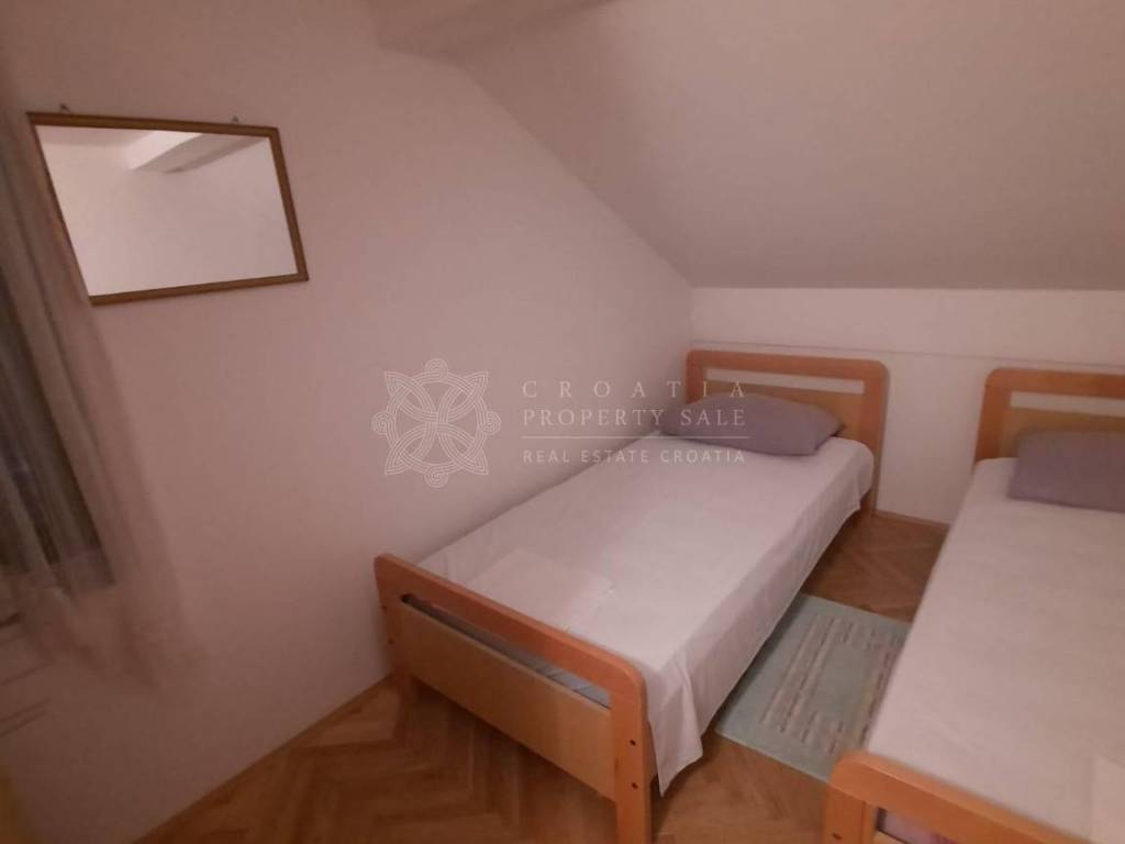 The total living space is 319 m2, while the land plot measures 430 m2. The house was renovated in 2011. Top floor is attic apartment that has 4 bedrooms, large terrace, bathroom and additional toilet and kitchen. Same layout is apartment on the second floor. First floor apartment has 3 bedrooms, bathroom and additional toilet, storage room, large kitchen with dining area and large terrace. Ground floor apartment has 84 m2, but is not finished inside, so it can be arranged according to your ideas, or can be used as storage space.