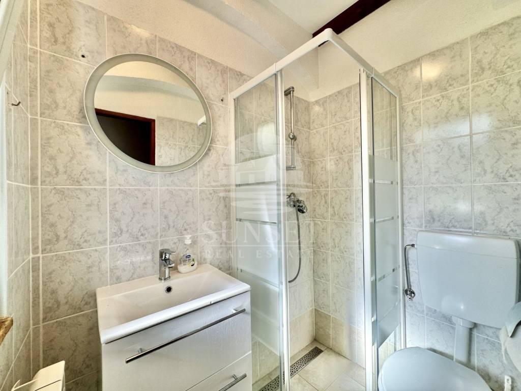 All apartments offer open sea views, and the house sits on a large, landscaped yard of 1,150 m, which features a children's playground and a summer kitchen with a fireplace, perfect for family and friends gatherings. The ground-floor apartments have attractive terraces, while the largest apartment on the first floor boasts three terraces. The entire house is heated with central heating using oil.